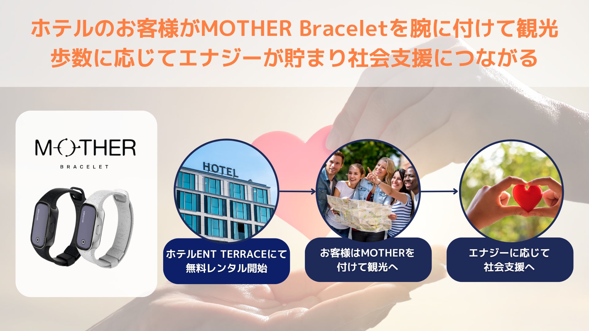 旅行中の歩数が社会支援につながる充電不要のスマートトラッカー「MOTHER Bracelet」をホテル「ENT TERRACE」に導入開始