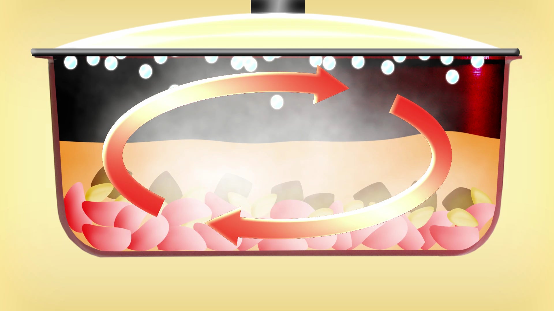 無水調理を可能にした特殊なフタは、レバーをひねると蒸気口が閉じて無水調理を可能にします。フタに150gの重りをプラスしたことでフタと鍋の密着度がアップ。大事な蒸気を逃しません。無水調理は食材の水分だけで料理を作る調理方法です。栄養を逃さず、食材のうま味を凝縮してくれるので、いつもの食材でさらにおいしい料理が作れます。