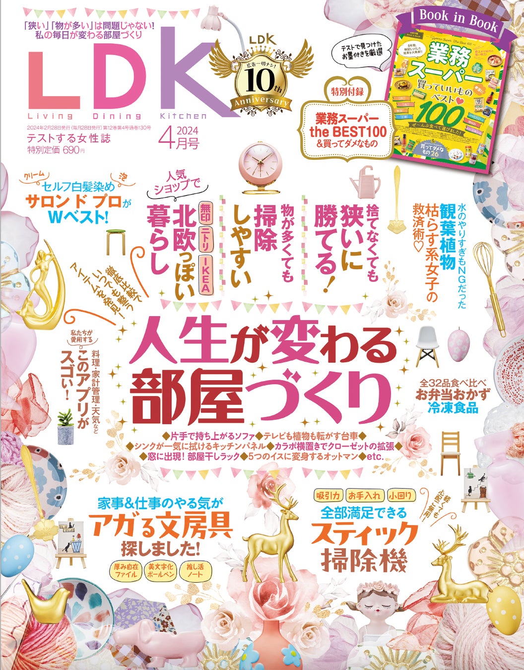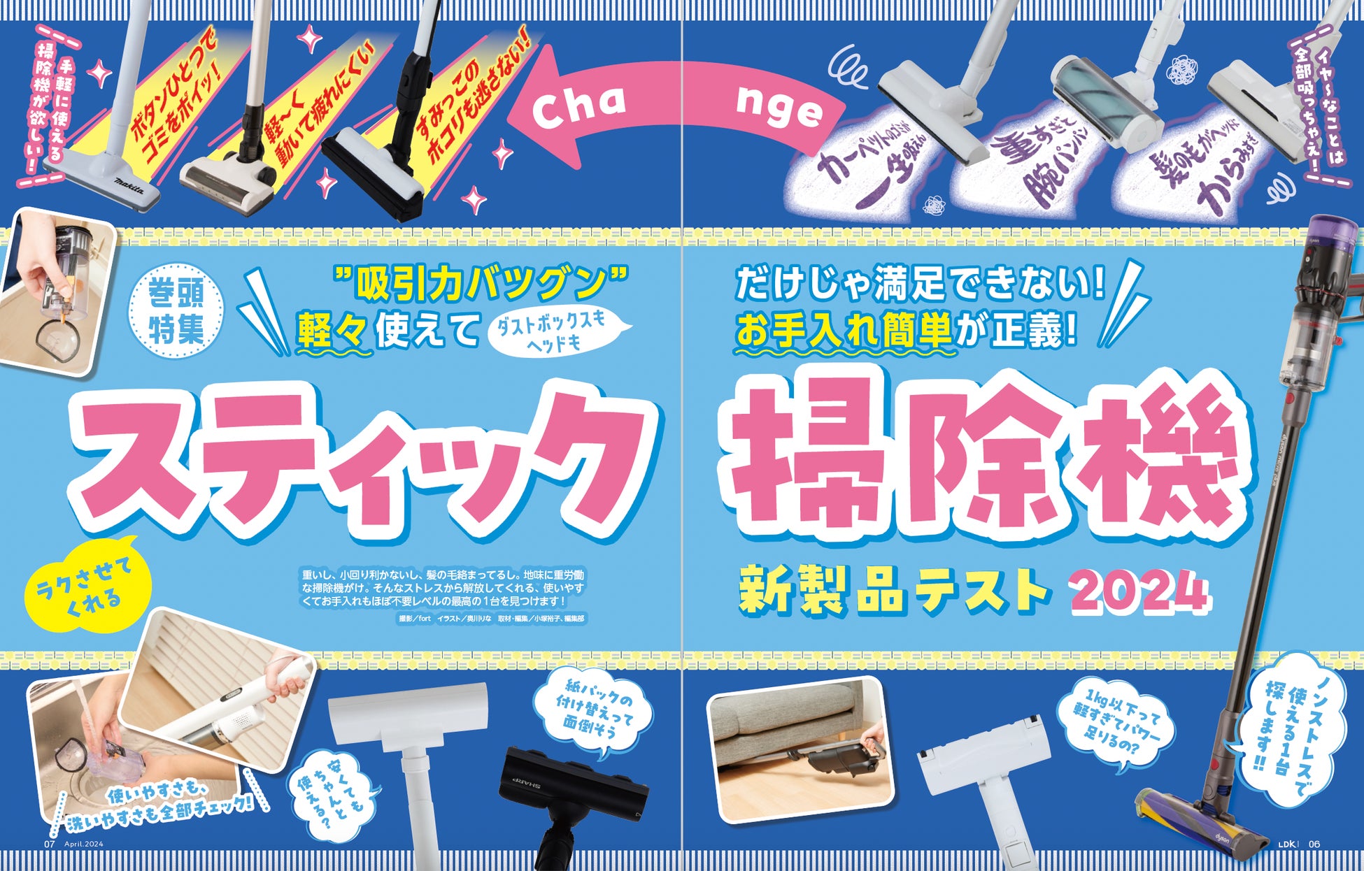 最新スティック掃除機10台を徹底テスト!部屋づくりテクやお弁当用冷凍食品のおすすめも紹介!!【LDK 2024年4月号】