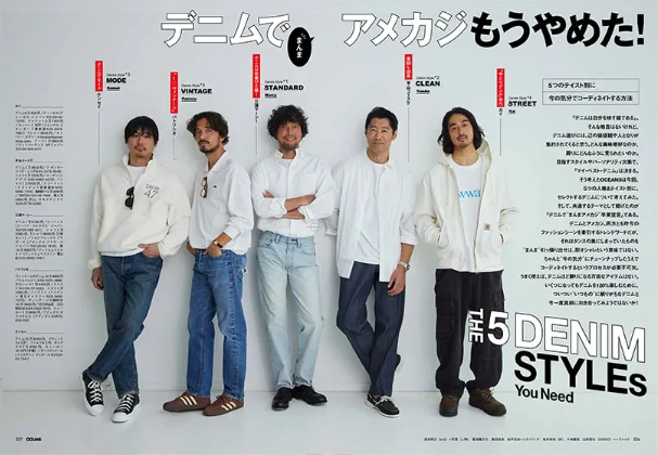 シルエット、色、素材、裾の処理、合わせ方……昔ながらのデニムも、昔から同じ点は何もなし。だからオーシャンズの最新号では言い切りました。「デニムで“まんま”アメカジもうやめた」。