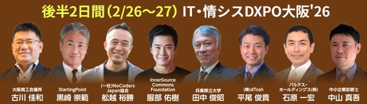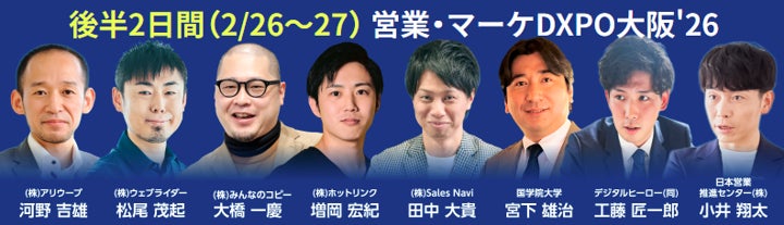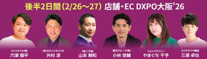 バックオフィスDXPO大阪'26では、ダイハツ工業(株) で全社のDXを推進し、社内外におけるAI活用の普及活動にも努める太古無限氏が登壇。営業・マーケ/IT・情シス/店舗・EC DXPO大阪'26では、『沈黙のWebマーケティング』等の著者としても知られる(株)ウェブライダー 松尾茂起氏、AIセキュリティの研究に従事する兵庫県立大学大学院田中俊昭氏、楽天市場の開発部門を牽引する楽天グループ(株) 小林悠輔氏が登壇。この他にも、本分野の第一線で活躍する方々を講師にお迎えし、全48セッションを開催する。あらゆる業種・企業・法⼈のビジネスパーソン必⾒のセミナープログラムだ。