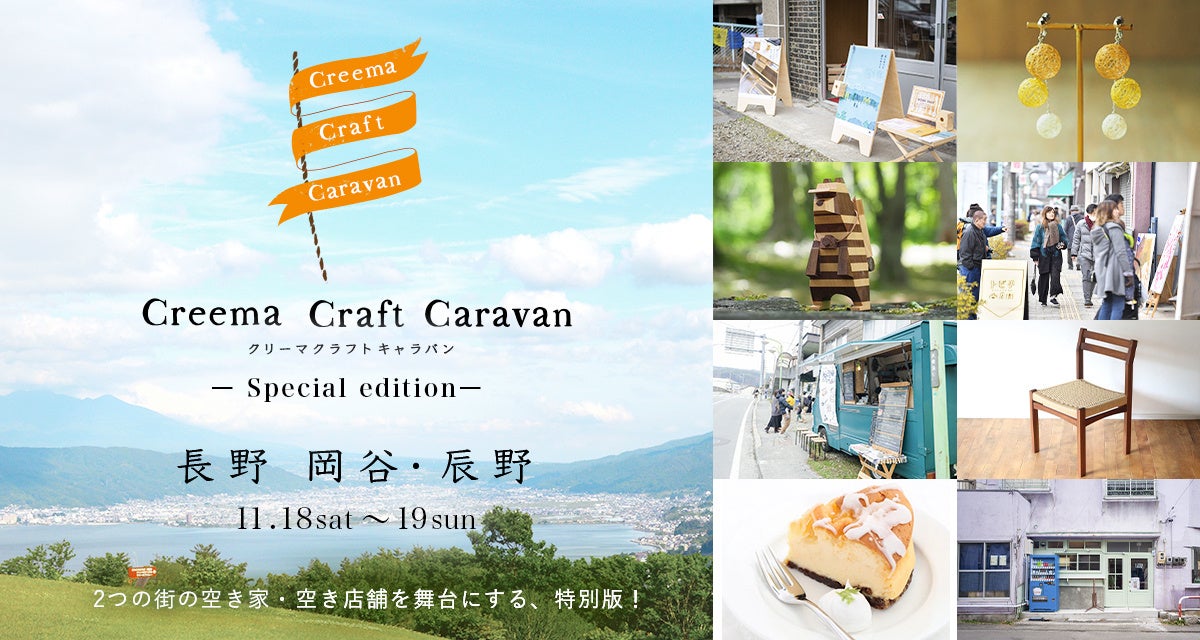 「Creema Craft Caravan」は、当社がこれまで培ってきた、Creemaのプラットフォーム基盤と発信力を活かし、日本各地の魅力的な街を舞台に、その街の人とともに地域を盛り上げることを目指し2017年にスタートしました。これまで糸島(福岡)、大洲(愛媛)、尾道(広島)、鯖江(福井)、桐生(群馬)、福島(福島)等、全国各地で開催し好評をいただいておりましたが、コロナ禍により現地開催の中止を余儀なくされていました。そんな「Creema Craft Caravan」が4年ぶりについに復活。今回は長野県岡谷市・辰野町にて、初の二拠点同時開催となります。古くからものづくりが息づくふたつの街に、各地から集まるCreemaクリエイターと地元のクリエイター、そして商店街によるマーケットが並びます。これまでの「Creema Craft Caravan」では街の施設や広場で開催してきましたが、今回は地元とタッグを組み、空き家や空き店舗を活用して実施。マーケットやワークショップに加えて、ふたつの街を巡りながら楽しむ企画も予定しており、岡谷市・辰野町の魅力を満喫できる特別版としてお届けします。