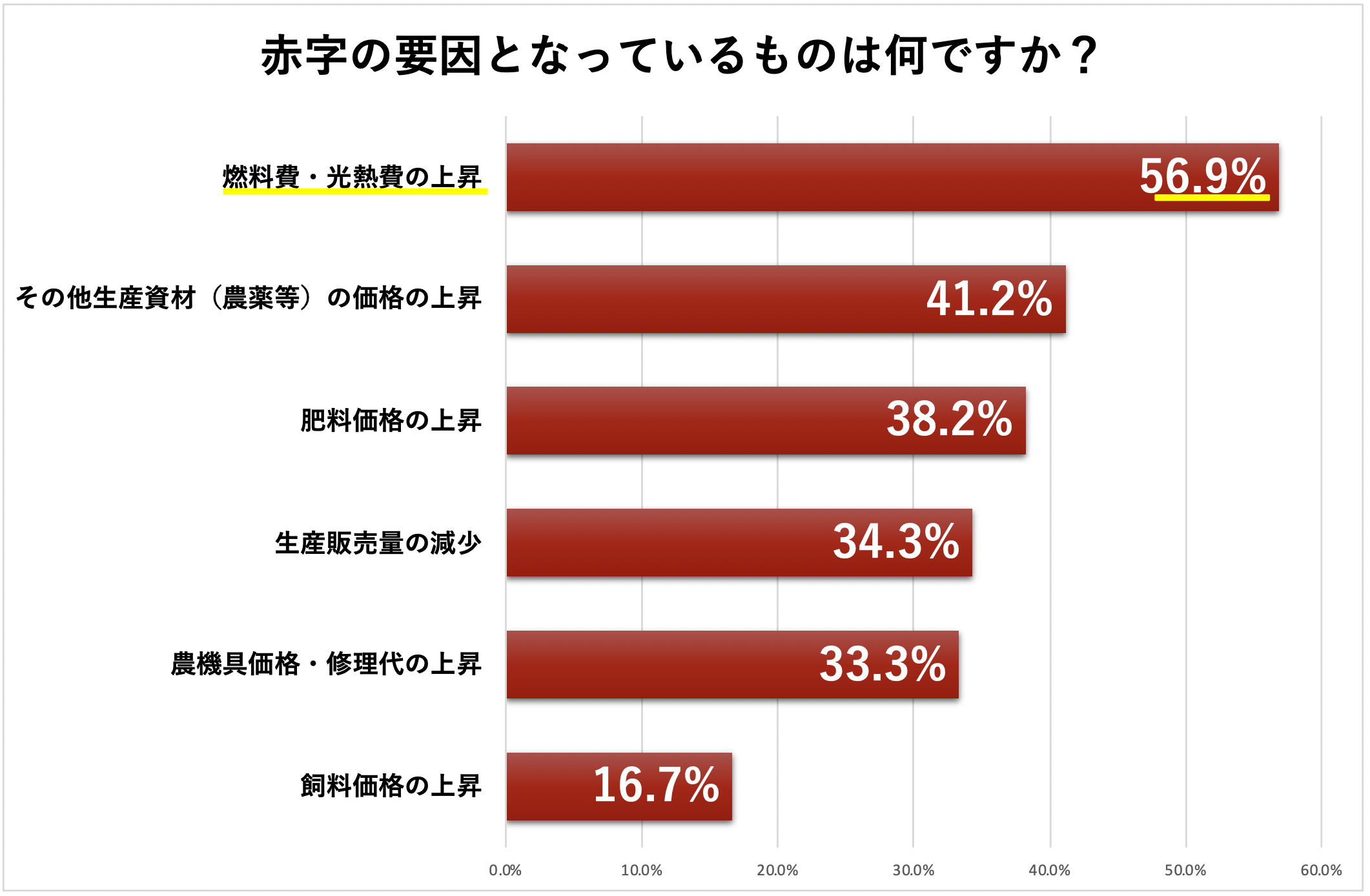 調査の結果、5割の生産者が「2022年の経営状況が赤字」と回答し、赤字の要因1位は「燃料費・光熱費の上昇」という結果になりました。