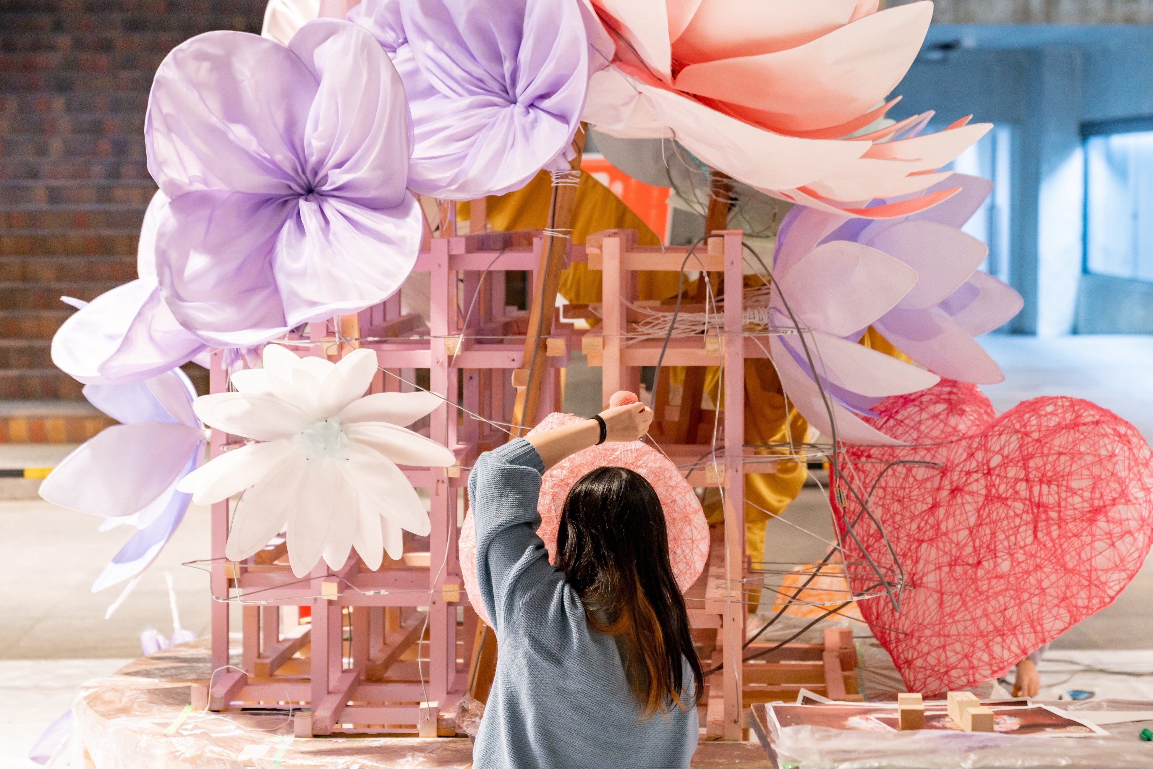・「UEMDA MEETS HEART 2022」のイベントコンセプトの1つである「大切な人を想う気持ち」に焦点をあて、「大切な人に花束を贈る。」をテーマにしたオブジェ「贈る気持ち」を制作。