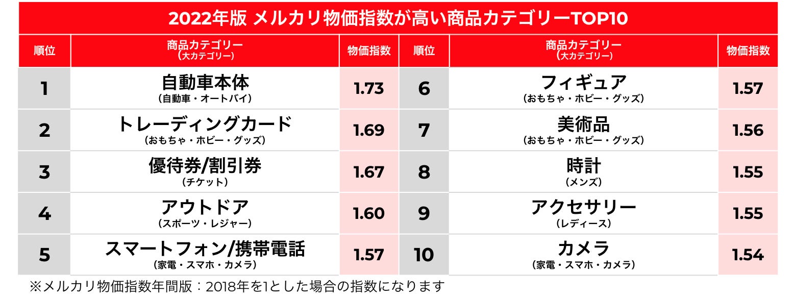 | <12月ポイント> ・2022年版メルカリ物価指数が高い商品カテゴーTOP10ランクインの「トレーディングカード」、メルカリ数量指数は12月で過去最高に |