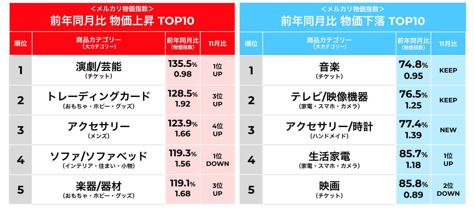 - 2022年12月、物価指数が上昇・下落した商品カテゴリーTOP5(前年同月比)