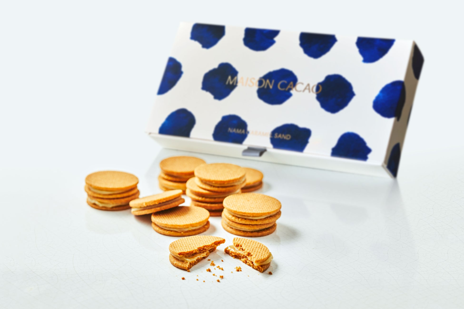 カカオの恵みを贅沢に閉じ込めた、生キャラメルサンドクッキー。 新鮮なカカオバターから作られる、とろける生キャラメルをたっぷりとサンドしました。