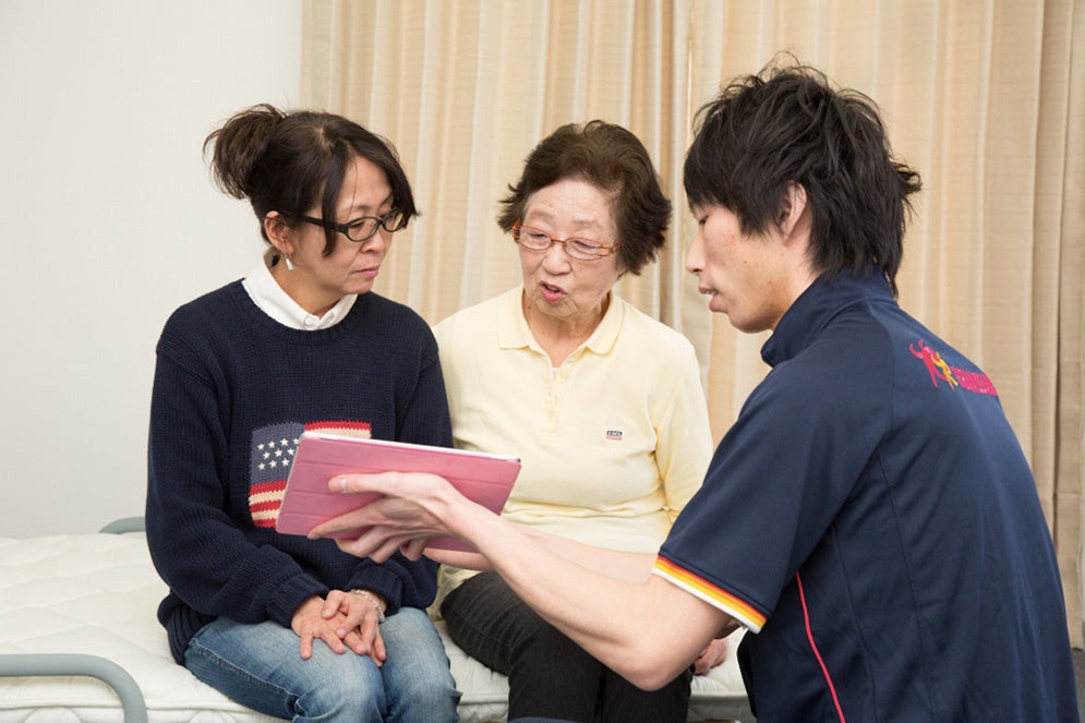 タブレットを用いて、健康状態や歩行動作等を写真や動画で継続的に記録し、状態の変化を視覚的に説明します。