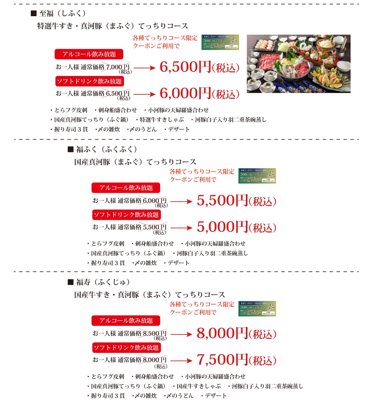 真河豚(まふぐ)てっちり、牛すきしゃぶなどをお楽しみください。お得なクーポン券をご利用ください!