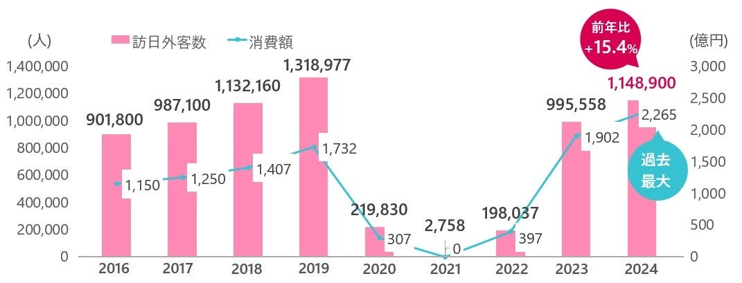 ※2:観光庁「訪日外客数(2024 年 12 月および年間推計値)」(日本政府観光局)および「【インバウンド消費動向調査】2024年暦年の調査結果(速報)の概要」を参照、グラフはこれらをもとに当社が作成。
