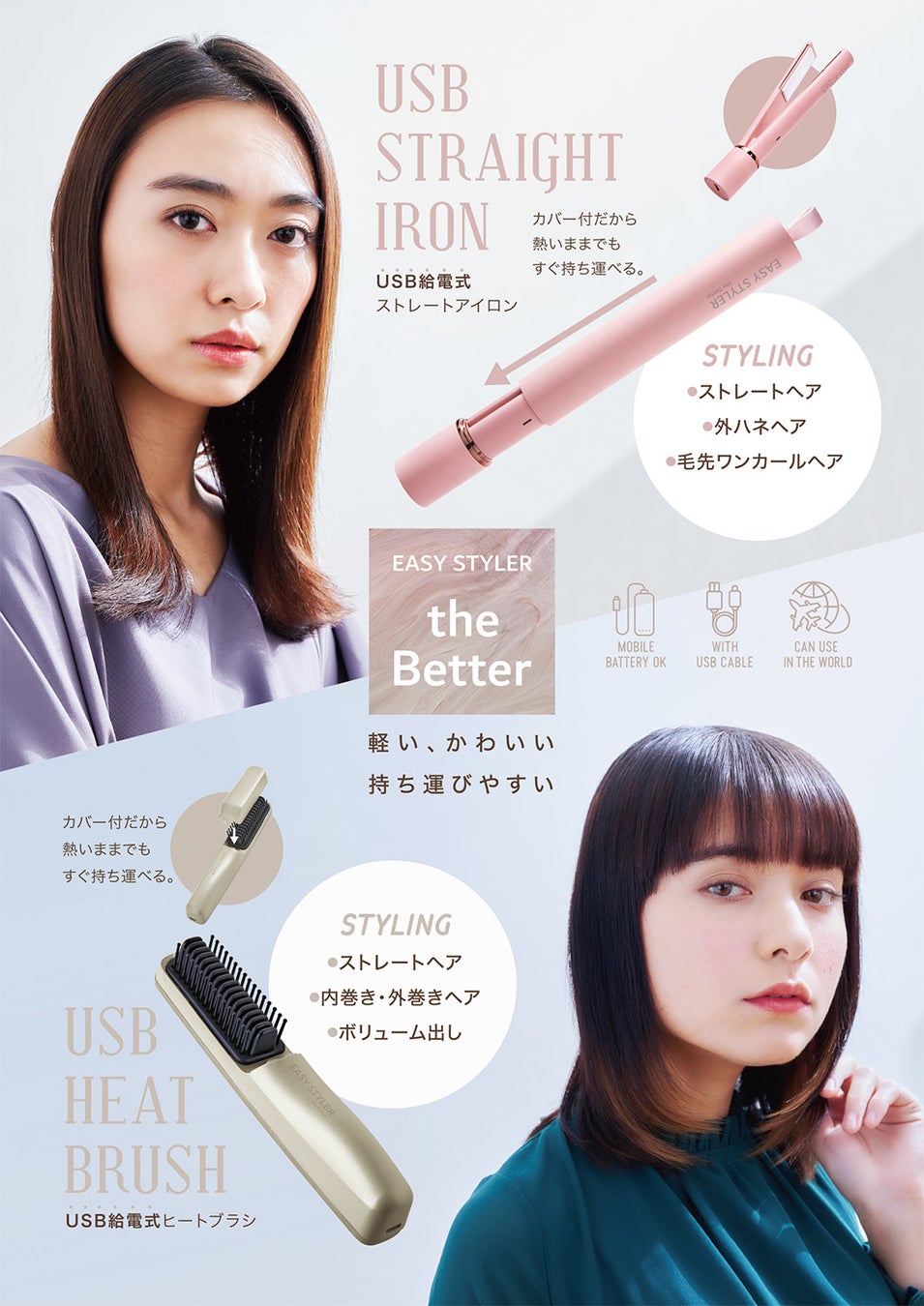 軽い!可愛い!持ち運びできる!USBヘアアイロン&ブラシ「Easy Styler the BETTER USB STRAIGHT IRON&HEAT BRUSH」を4月1日より発売