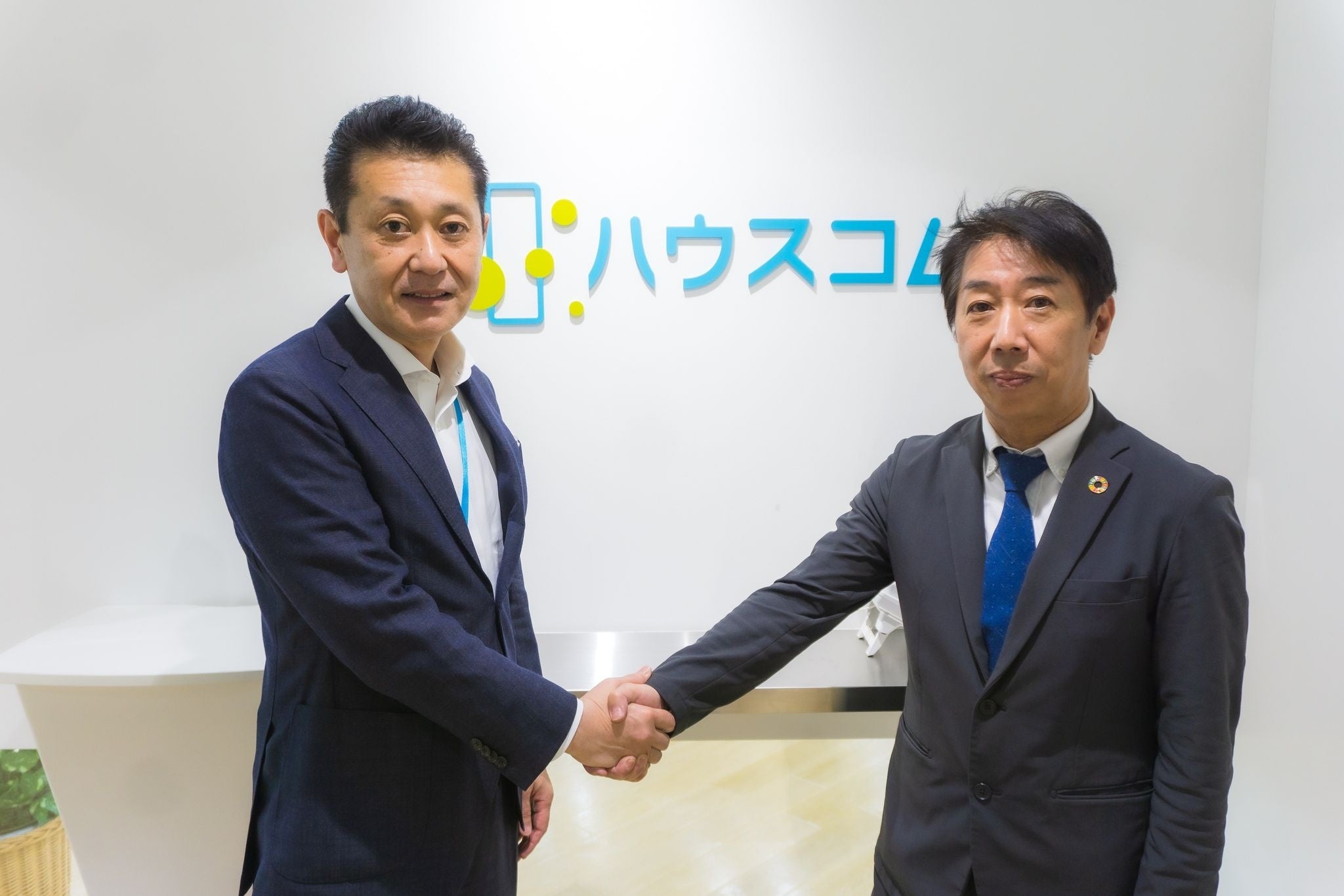 (写真左より:ハウスコム代表 田村 穂、右:シーアールエヌ代表 櫻井 啓孝)