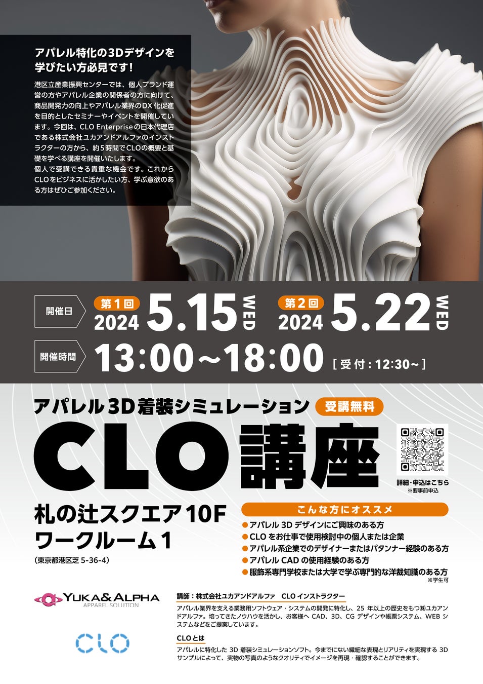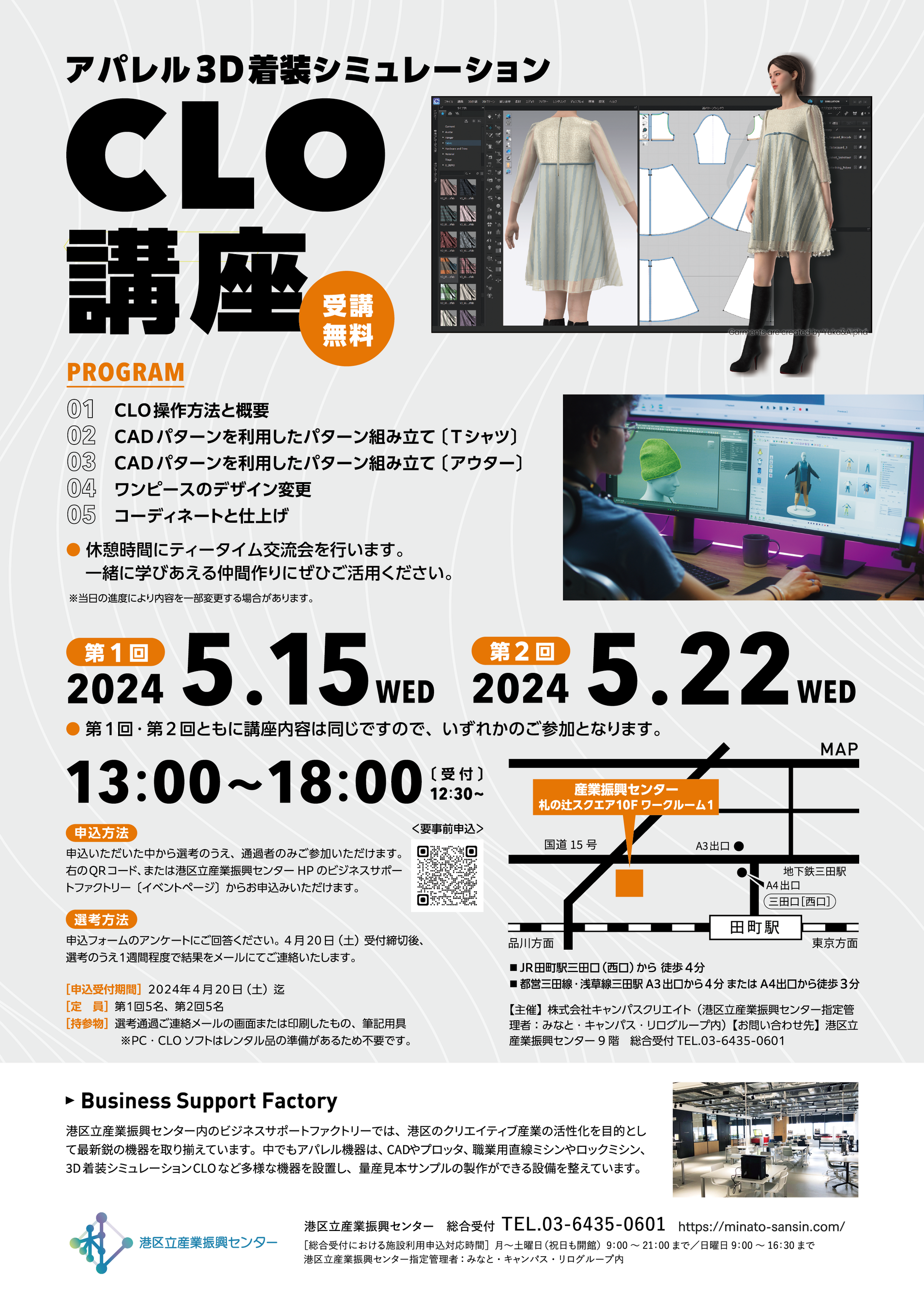 アパレル着装シミュレーションCLO講座2024春 5月15日・22日開催!