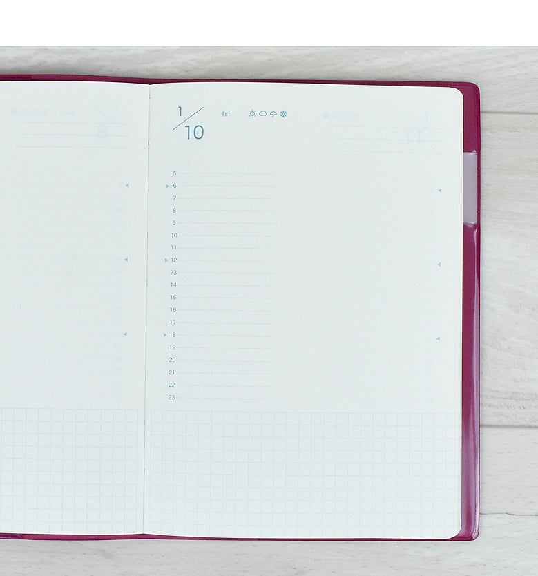 デイリー手帳は、1日1ページです。時間(予定)・詳細・その日の振り返りができる3分割構成のためその日の出来事や記録をきちんと書き込む事ができます。