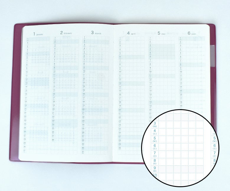 また、小型ミニマンスリー手帳は本体カバーに挟んで収納できます。月間の予定をミニマンスリーで確認しながらデイリー手帳へ予定の詳細や記録を書き込む事といった使い方が可能です。
