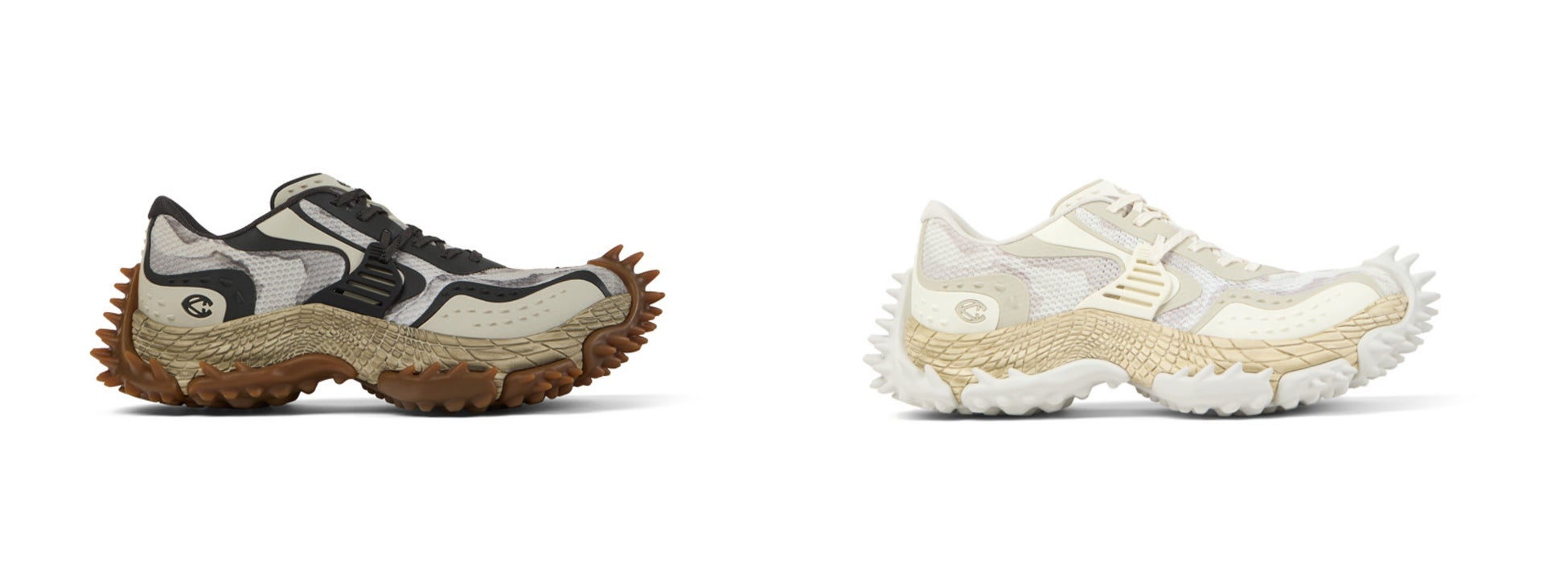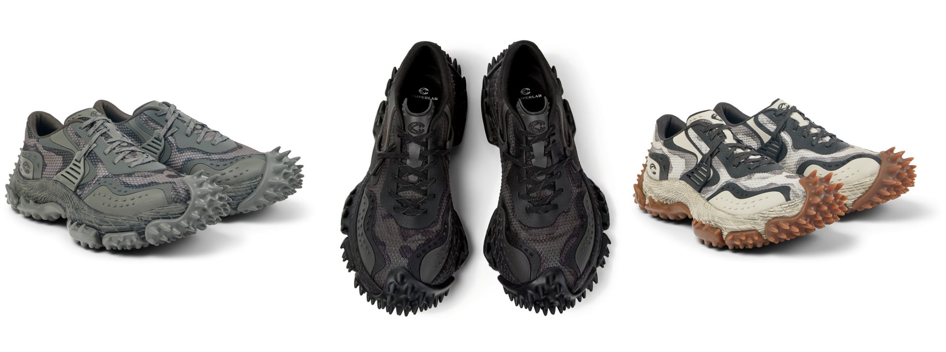 CAMPERLABはこれまで、2022年に「Tossu(トス)」、2023年に「Tormenta(トルメンタ)」という2つの革新的なスニーカーモデルを発表してきました。ハイエンドなデザインでありながらサステナビリティも両立した「Tossu」と「Tormenta」は、いまではブランドを象徴する人気モデルとなっています。3代目となるスニーカー「Tornado(トルネード)」は、26SSパリ・メンズファッションウィークで初披露され、2月19日(木)にグローバルローンチを迎えます。近未来的なフォルムと機能性を融合した本モデルは、かかとからつま先までアウトソールを覆うスパイク状のラバーコンパウンドが特徴で、優れた駆動力と抜群のグリップ力を発揮します。彫刻的で爬虫類を思わせるミッドソールが、一体成型のKPUインジェクション・アッパーを包み込むことで耐久性を確保し、100%リサイクルメッシュにより通気性も向上。内部には高反発EVAを採用した基盤があり、優れたクッション性とダイナミックな動きを実現し、さらにORTHOLITE® X40インソールによって高い反発性と快適さが強化されています。