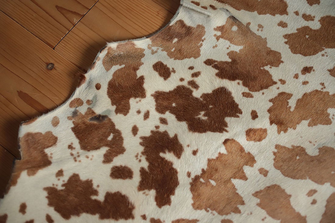 茶色のぶち模様の革は、一枚革から裁断しているので一つ一つ柄が違います。どんな柄かは届いてからのお楽しみです。