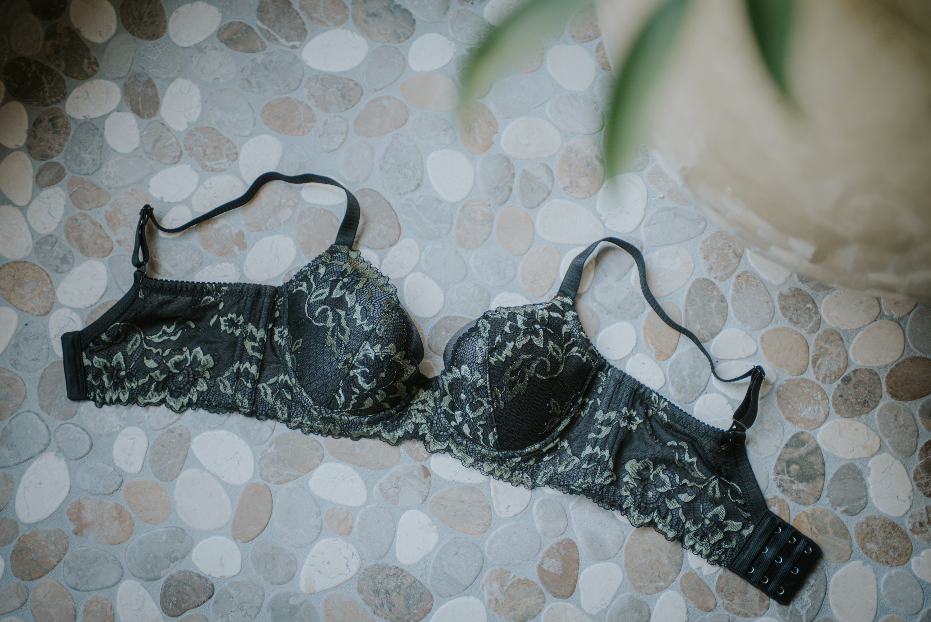 レースのお花は落ち着いたグリーンで表現されており、ブラックとグリーンの絶妙なコントラストが女性らしい繊細さと凛とした美しさを演出。下着はついブラックを選びがち、という方にもお洒落を楽しんでいただけるカラーリングになっています。
