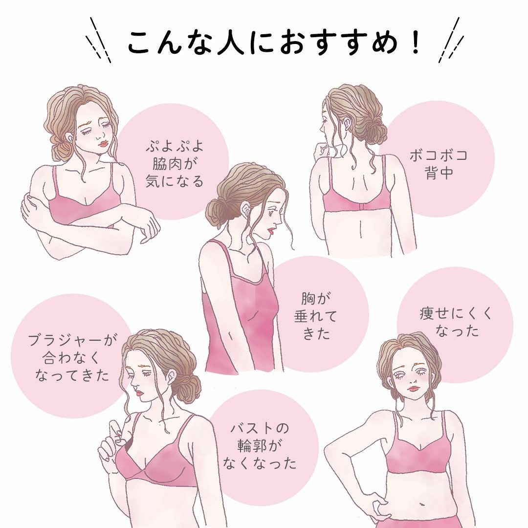 とくに加齢や授乳とともに柔らかくなり、流れてしまいやすくなったお肉をしっかりと集め、バストを高い位置でキープする習慣をつけてくれる「元祖脇肉キャッチャー Ver2.0」。その特徴は以下の4点となります。
