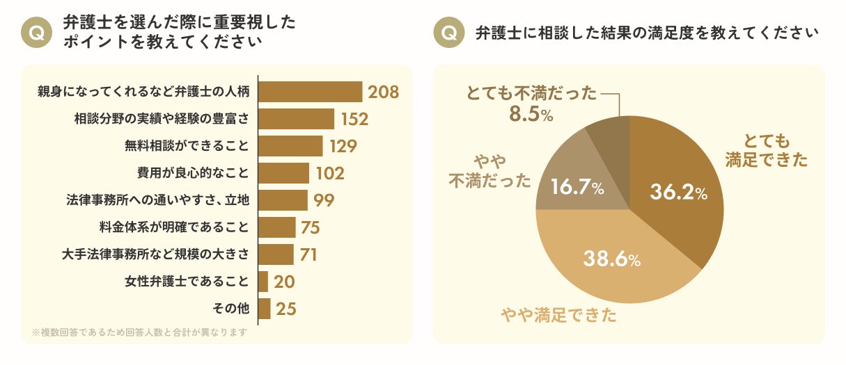 弁護士選びのポイントは「人柄」で7割以上は相談に満足している