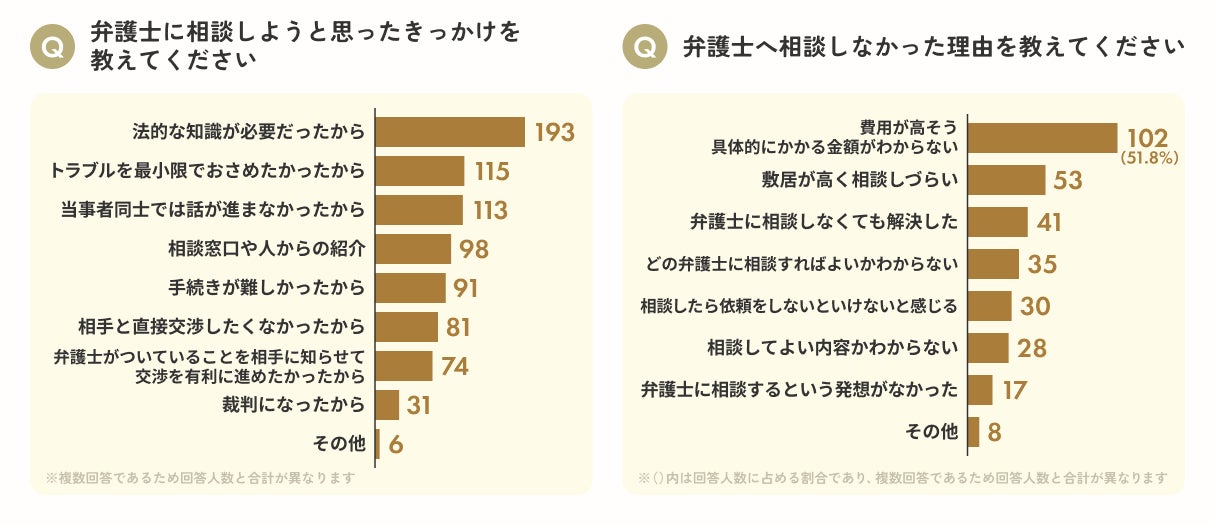 弁護士相談のきっかけは「法的な知識」相談しない理由は「費用の懸念」