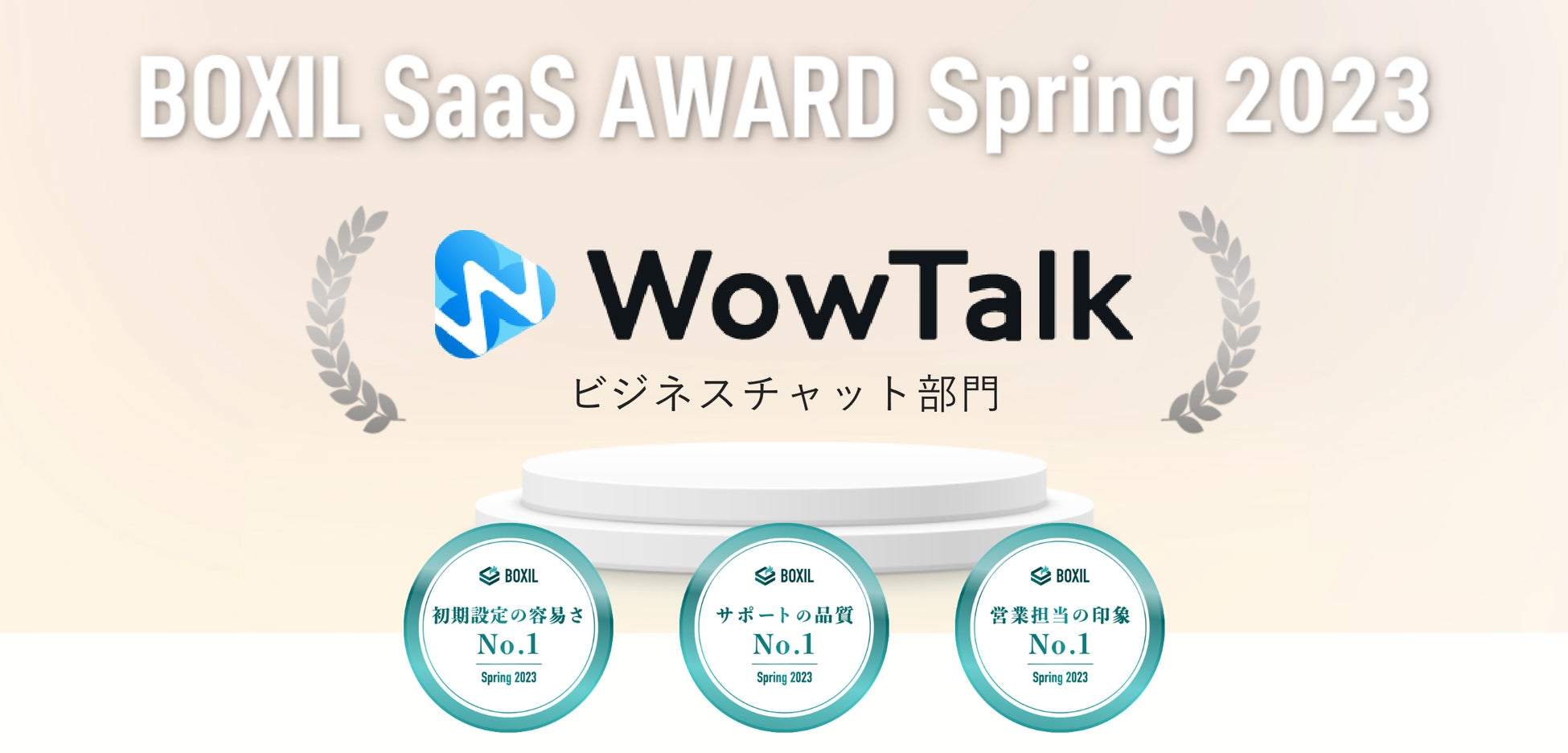 WowTalk、「BOXIL SaaS AWARD Spring 2023」ビジネスチャット部門で「初期設定の容易さNo.1」「サポートの品質No.1」「営業担当の印象No.1」に選出