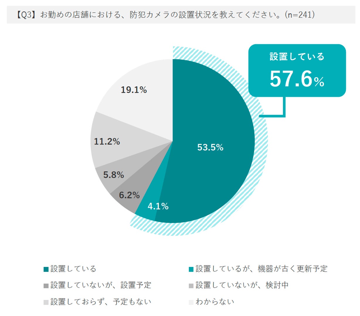 1. 防犯カメラの設置割合は約6割。店舗数が多いほど設置率が高い傾向に