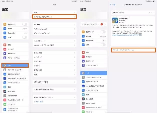 「設定」→「一般」→「ソフトウェアアップデート」→「ダウンロードしてインストール」