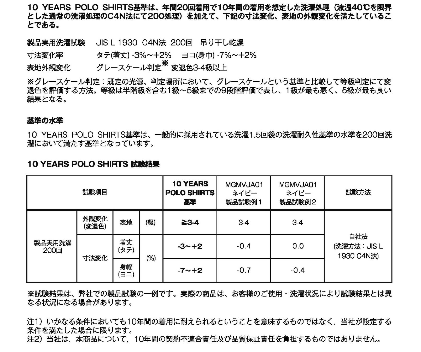 肌触りと風合いの良さが特徴の綿混素材ですが、洗濯しているうちに色が褪せてしまったり、縮んで型崩れしてしまうのが弱点です。「10 YEARS POLO SHIRTS」は身頃に加え、襟や袖リブにいたるまで特別なケミカル処理と特殊樹脂コーティング加工を施すことにより、200回の洗濯*をしても、従来の製品で見られる縮みや型崩れ、変色などを軽減することができました。さらに襟部分も編み方や厚みを工夫することでよりめくれにくい仕様にしています。