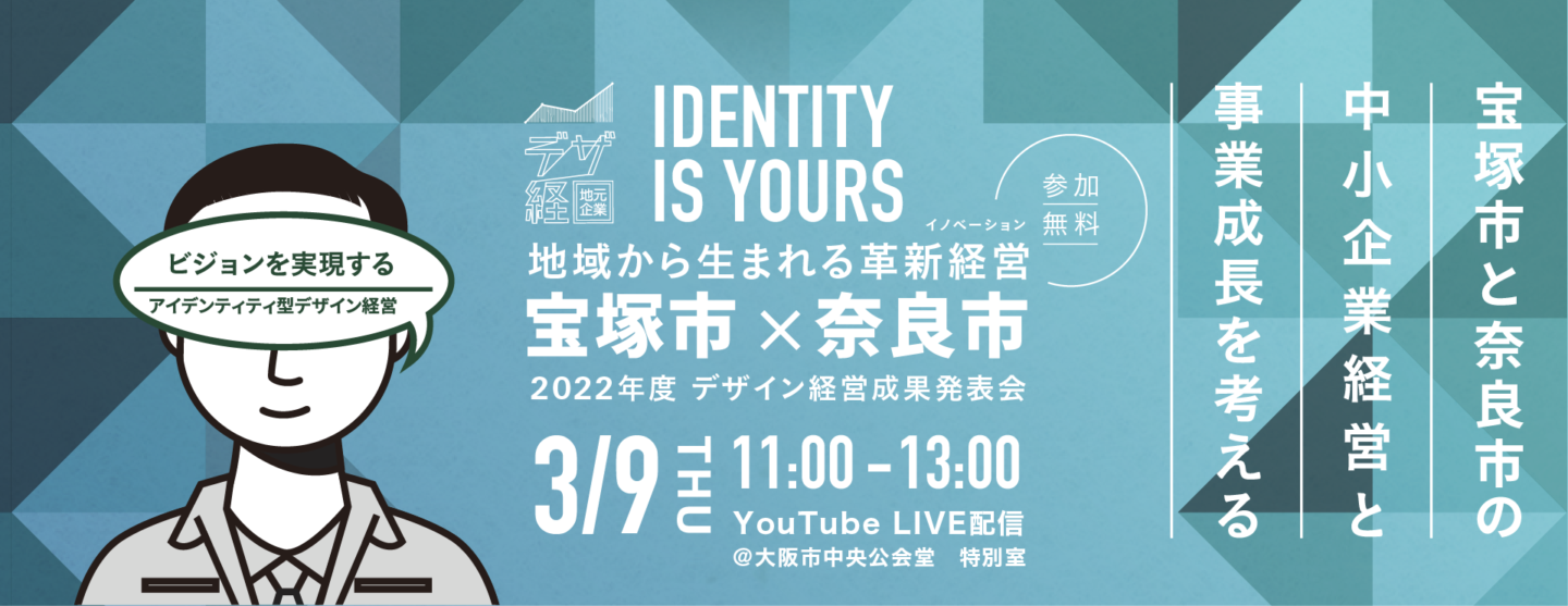奈良市と宝塚市は、令和5年3月9日大阪市中央公会堂(国指定重要文化財)にて2022年度デザイン経営成果発表会「地域から生まれる革新経営(イノベーション)」を開催します。当日はYouTube LIVE配信を行い、一般視聴者に無料公開します(要事前登録)。