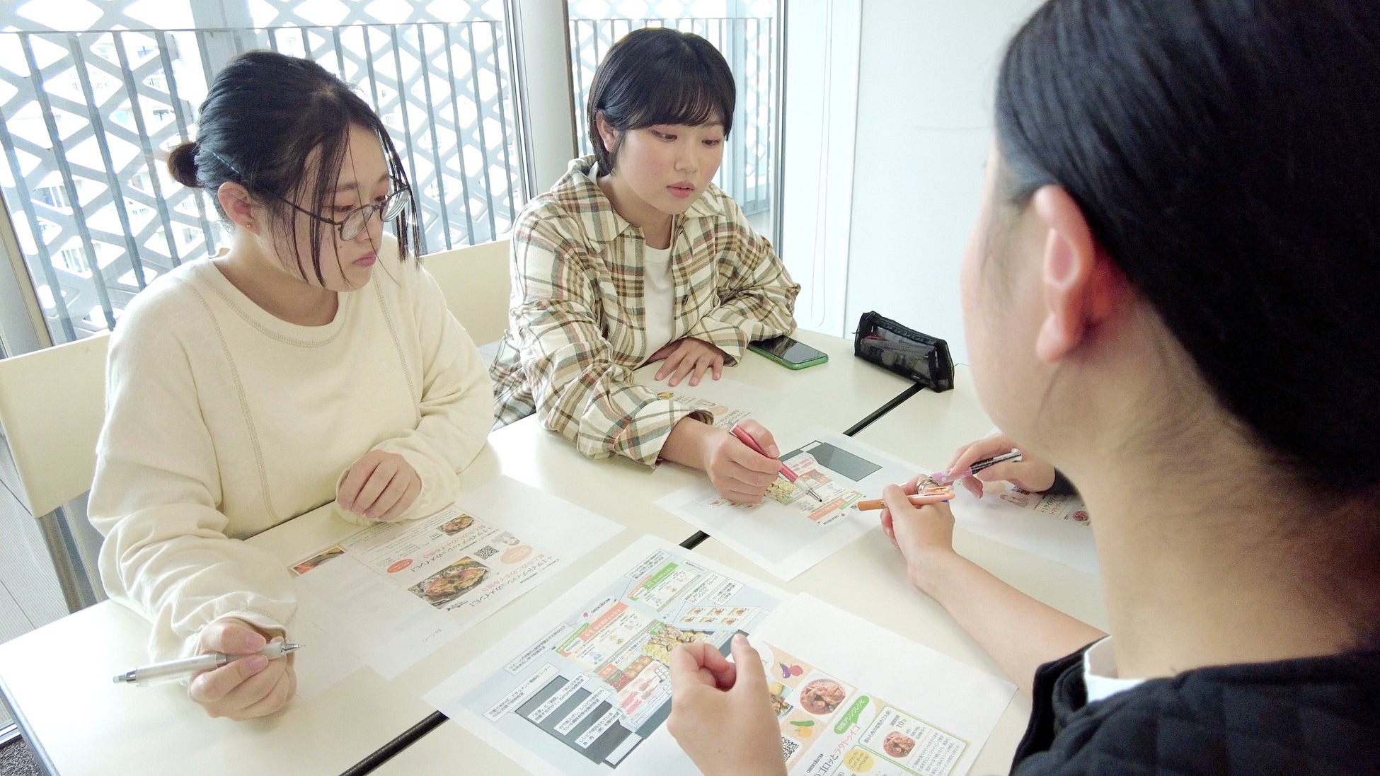 今回はじめての試みとして、株式会社エムアイフードスタイル様ご協力のもと、スーパーにご来店されるお客さまの食育を目的とした“産学連携プロジェクト”に取り組みました。手軽にバランスの取れた食事が組み立てられるような惣菜を開発するだけでなく、日々の食卓へ上手に取り入れていただくためのご提案まで、一連の流れを経験しました。