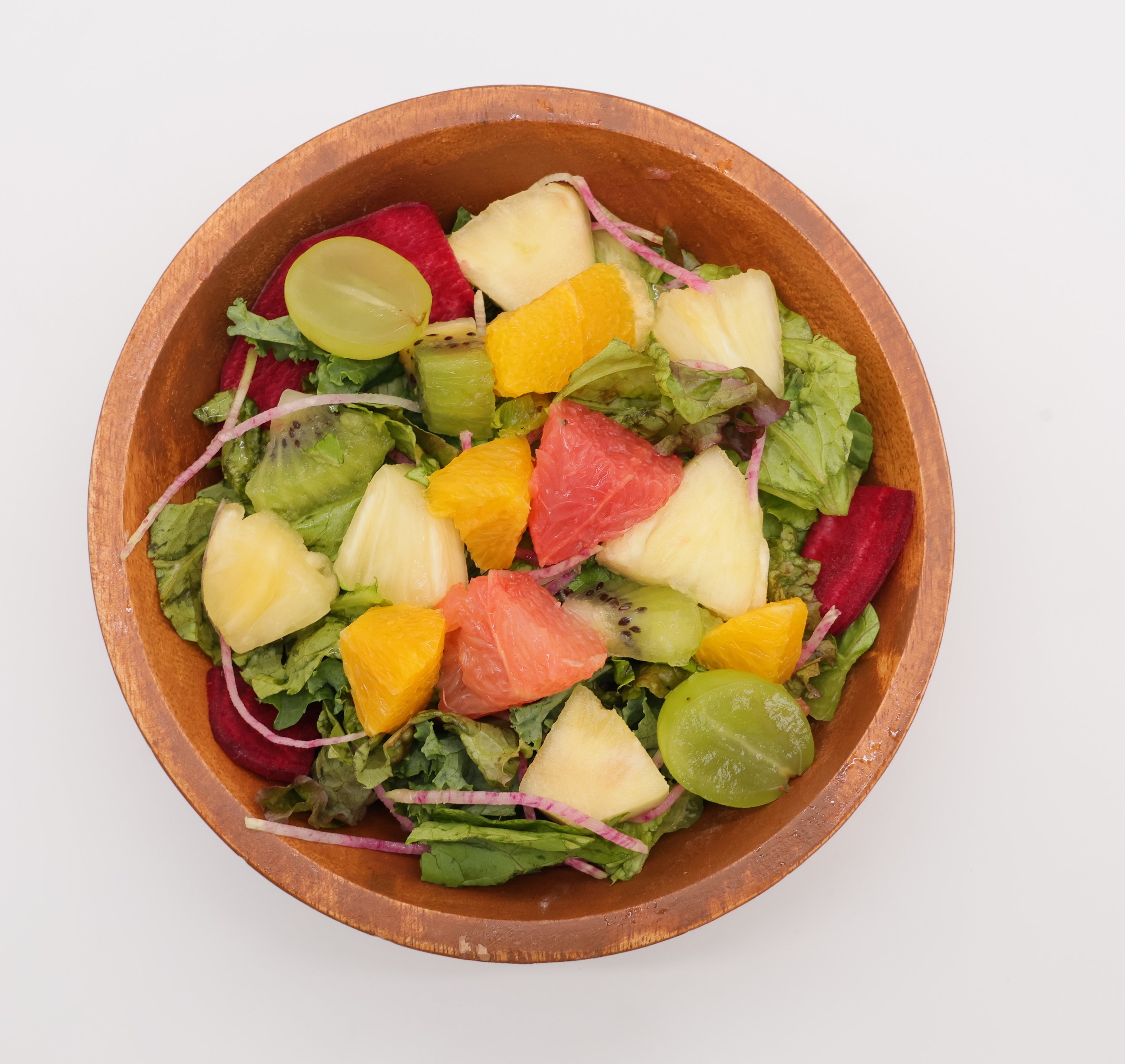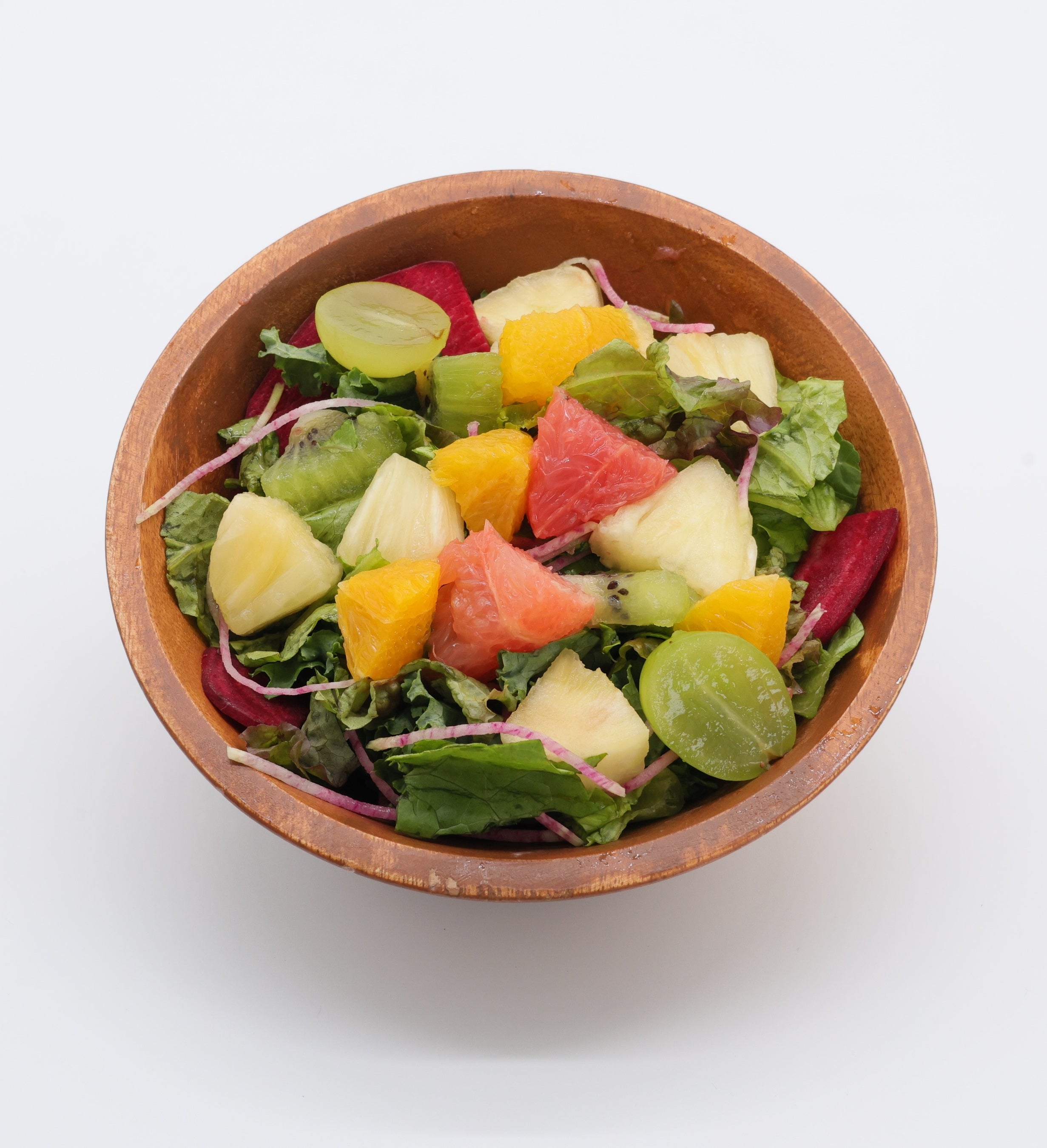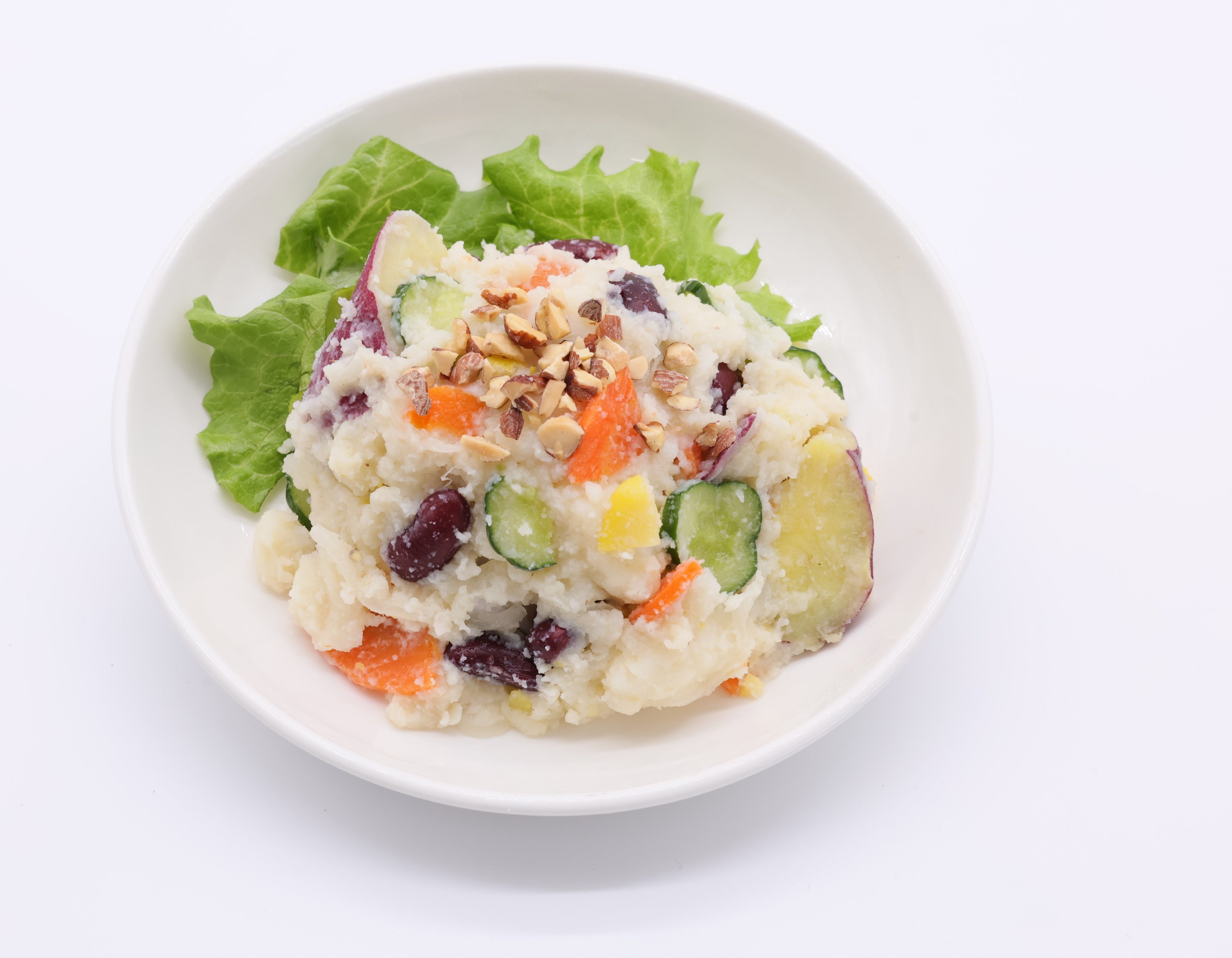 8品目の彩り豊かな素材の味・食感を存分に!:さつまいも、たまねぎ、きゅうり、レッドキドニー(赤いんげん豆)、 栗、にんじん、アーモンド、リーフレタスの8品目を使用。