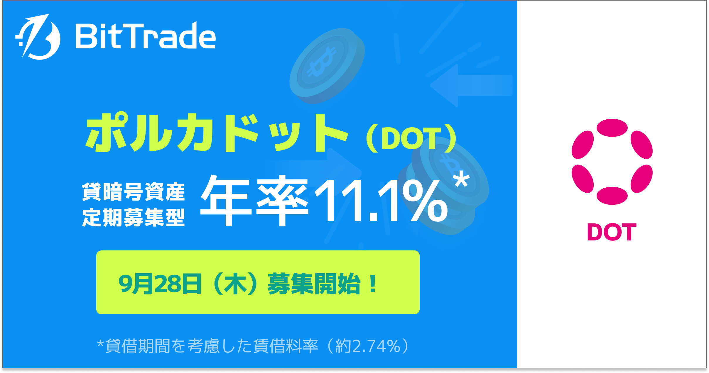 国内暗号資産取引所ビットトレード、【ポルカドット(DOT)貸して増やす・貸暗号資産】定期募集のお知らせ
