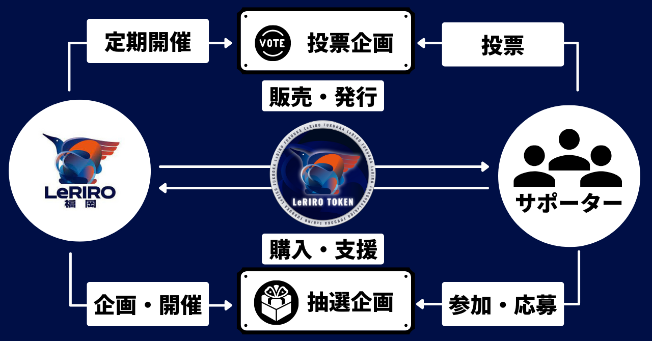 LeRIRO福岡のトークンは”LeRIROトークン”としてFiNANCiE上で発行されます。トークンを購入いただいた方々は、運営の一部に携われる投票企画への参加や特典抽選などへ応募いただくことができます。