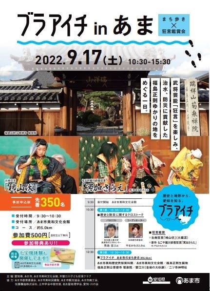 「ブラアイチinあま~武将芸能「狂言」を楽しみ、治水、防災に貢献した福島正則ゆかりの地をめぐる一日~」を開催します。