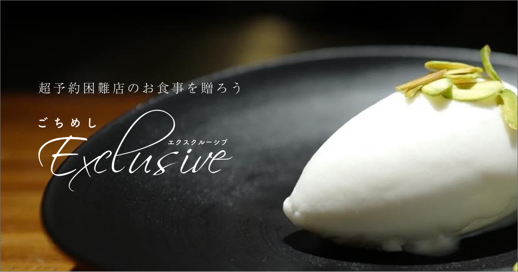「ごちめしExclusive(エクスクルーシブ)」は、予約困難な、誰しもが憧れる名店での "最上級のご馳走"を、ご予約とお料理のコースをセットで大切な方に贈ることのできるサービスです。