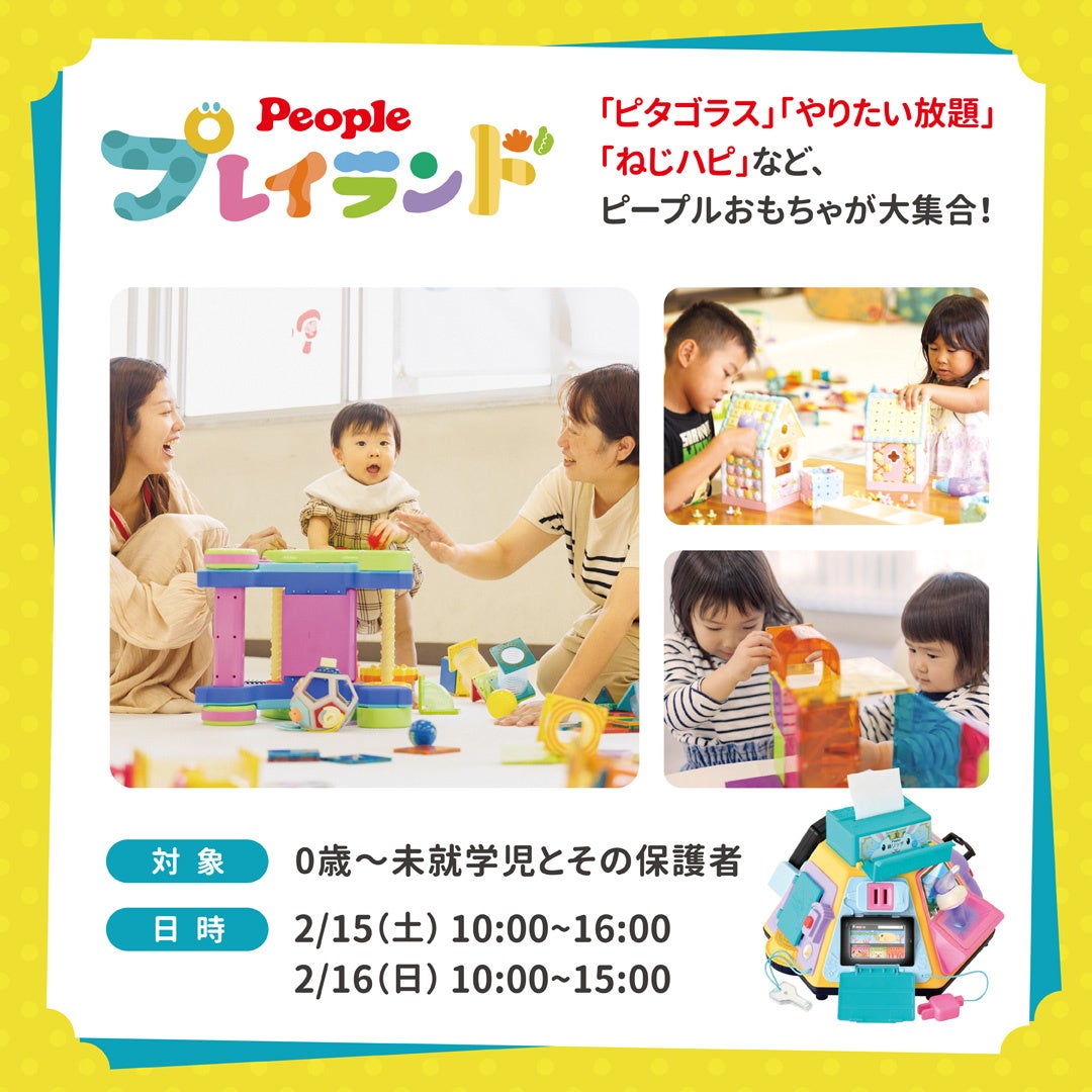 「やりたい放題」「ピタゴラス」「ねじハピ」など、ピープルおもちゃが大集合!赤ちゃん・子ども観察からうまれた"好奇心はじける"おもちゃで思い切り遊べます。予約不要。