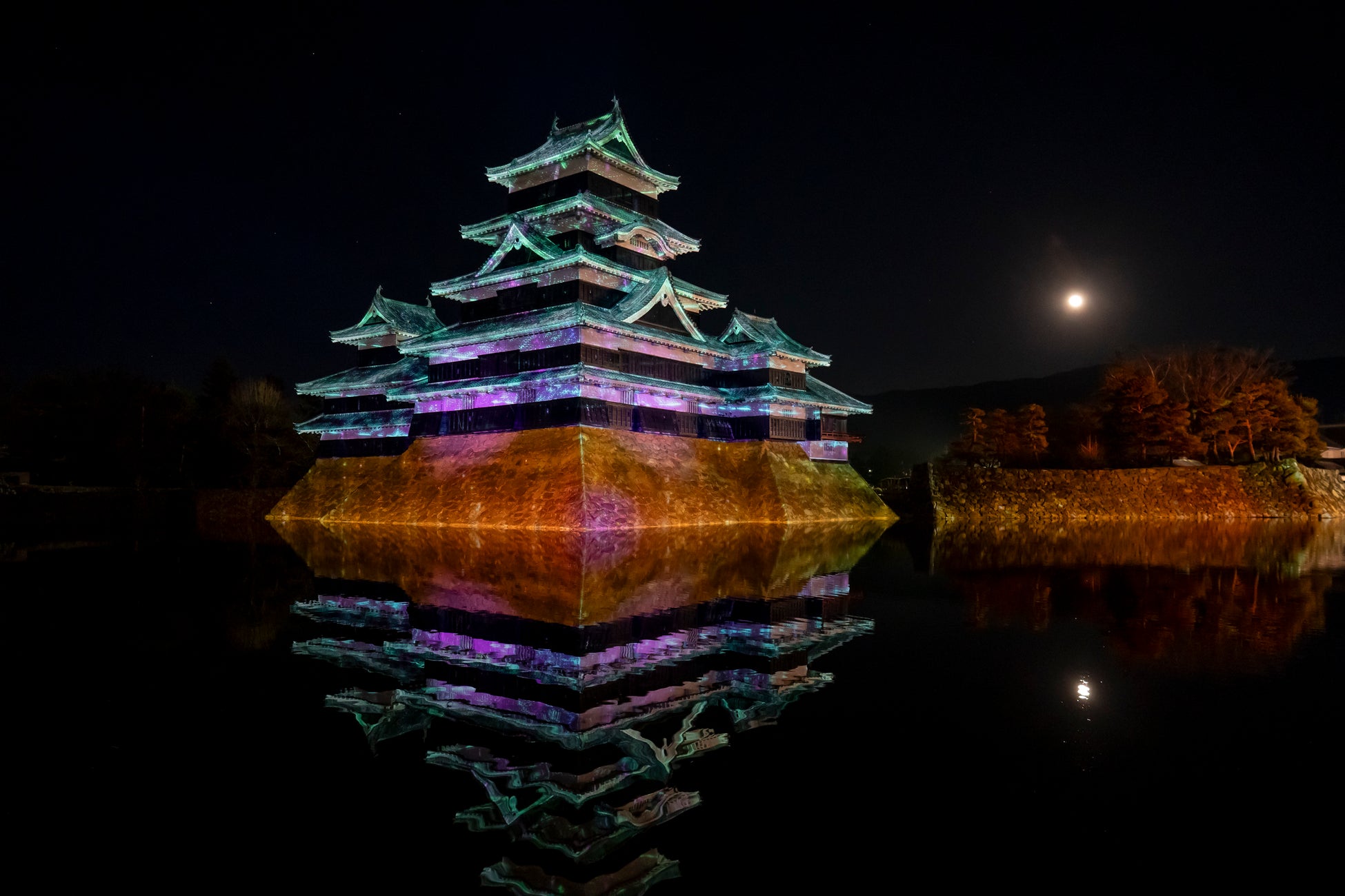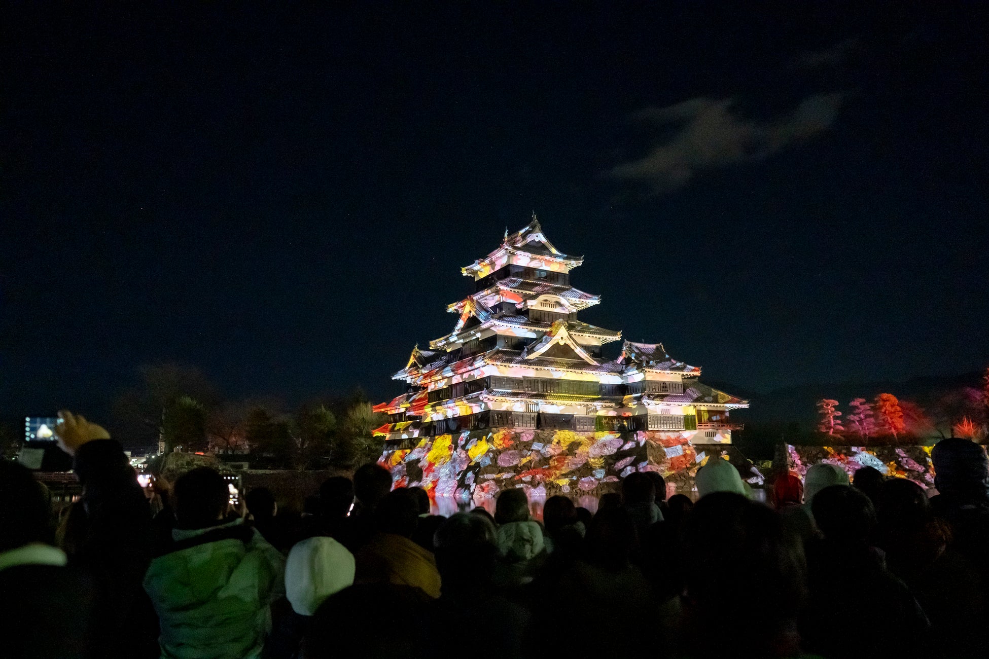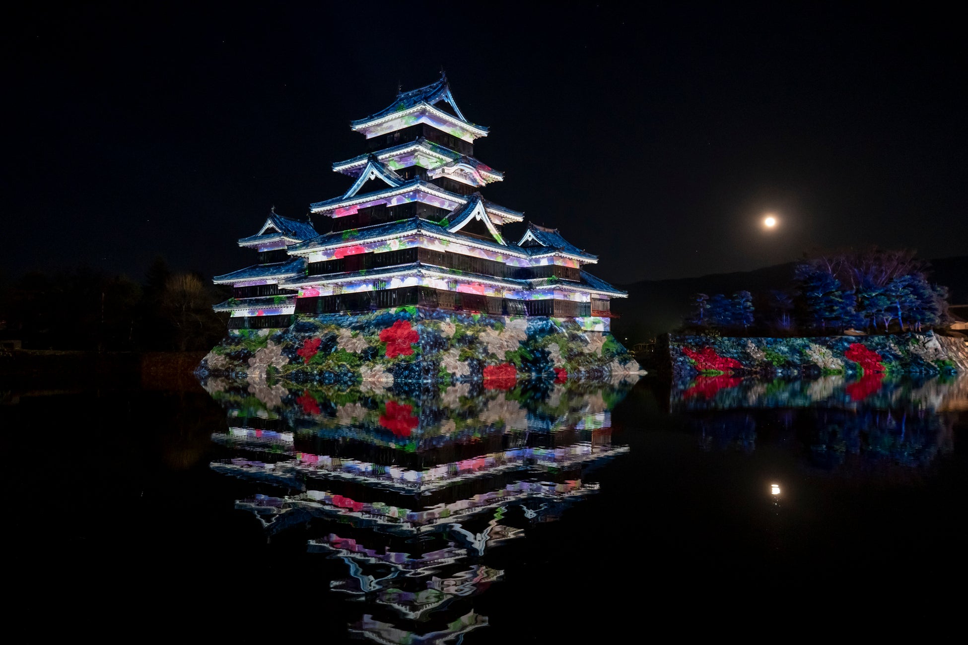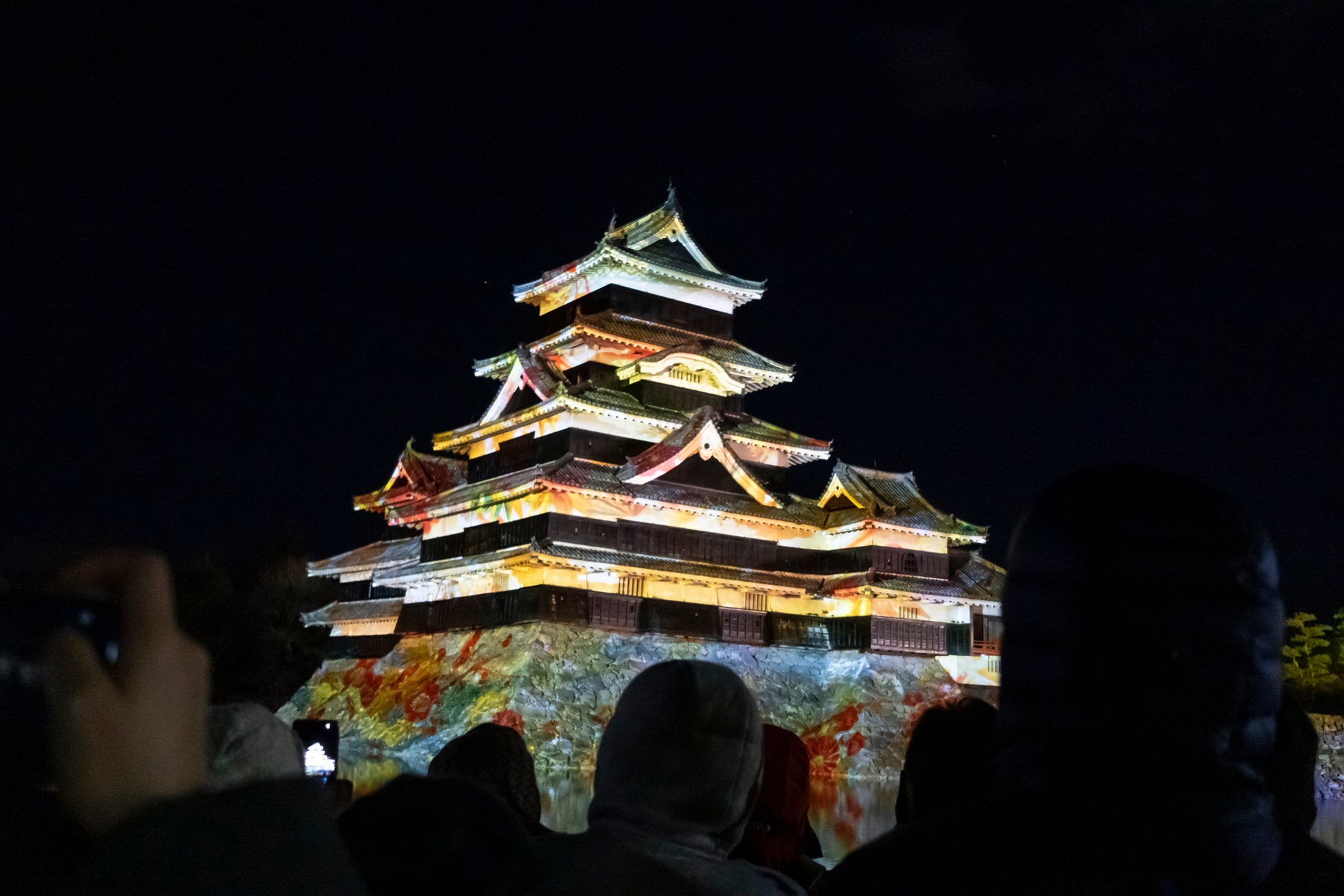 現存国宝5天守の一つ国宝・松本城の天守や石垣などにダイナミックで幻想的な映像を投影。第3期は春の訪れ、花鳥風月をテーマにフィナーレにふさわしい華やかな演出。
