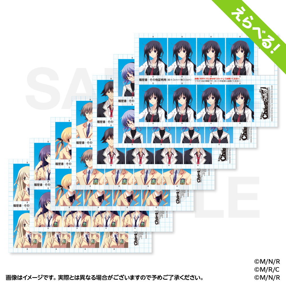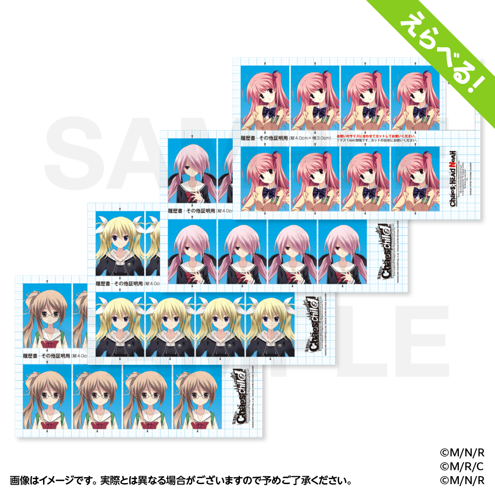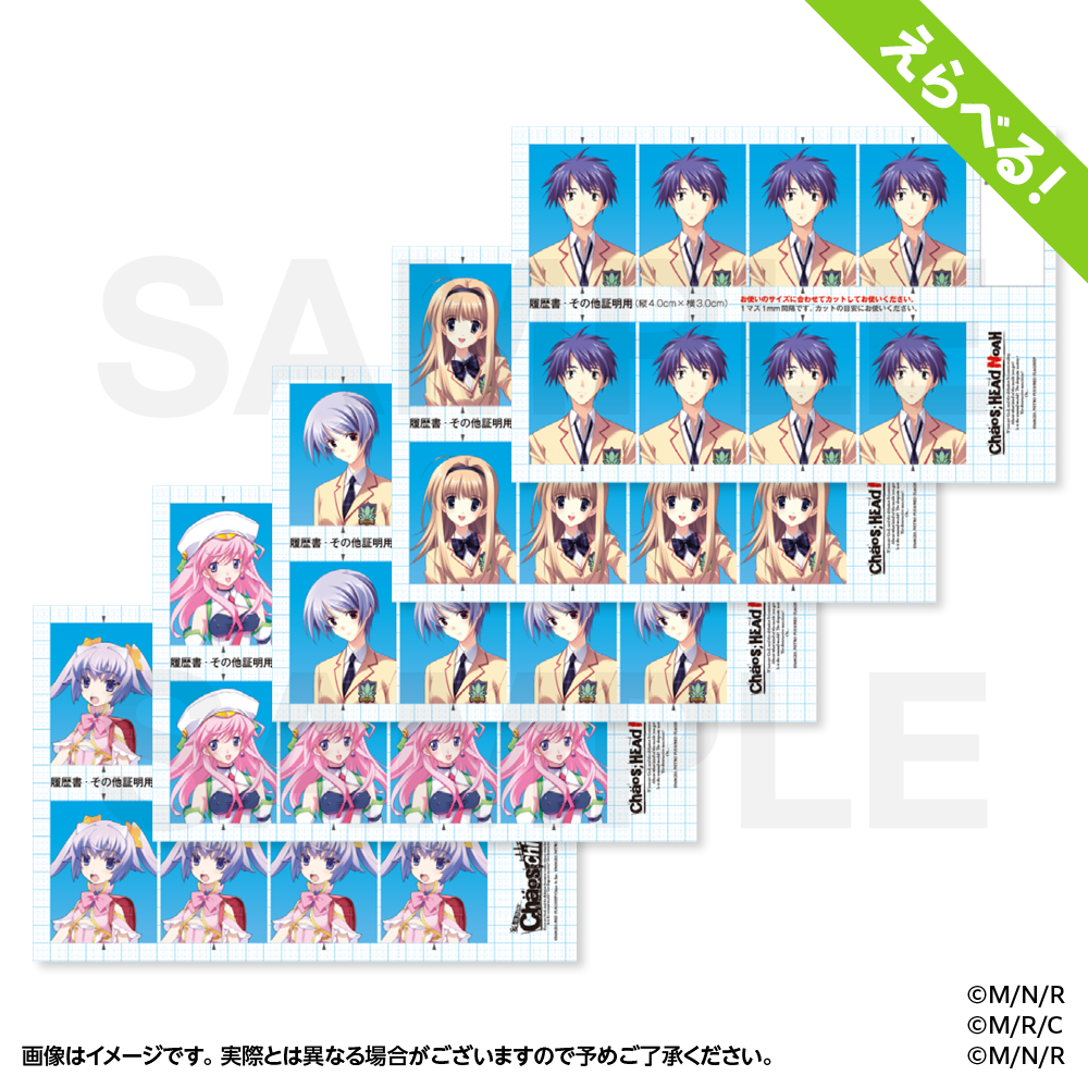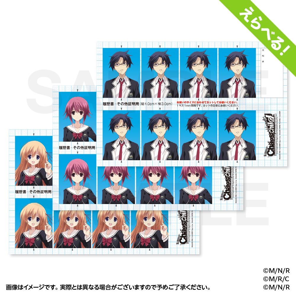 「CHAOS;HEAD NOAH」「CHAOS;CHILD」のキャラクター達を使った、証明写真風イラストカードです。