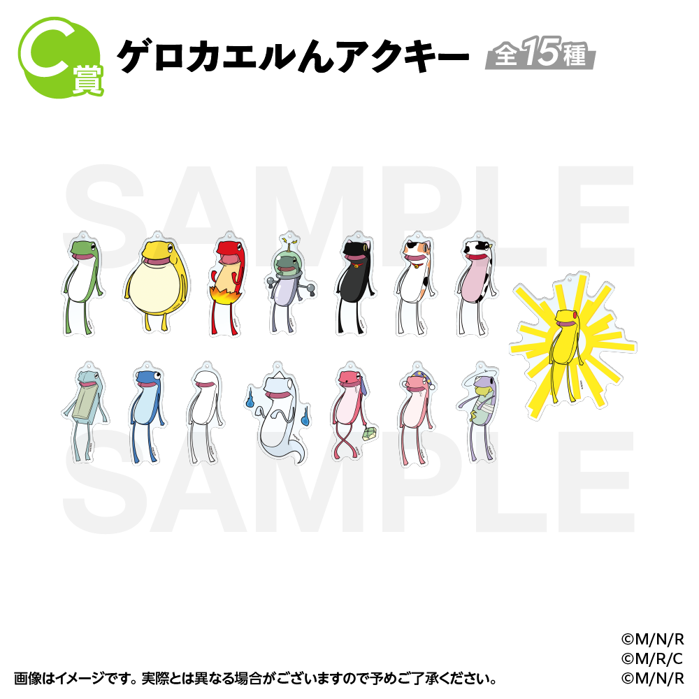 角度によってキラキラと輝く加工が施された「プリズムアクリルパネル」や、2作品のマスコット的キャラクター「ゲロカエルん」のオリジナルグッズなど、他では手に入らないアイテムたちがラインナップ!