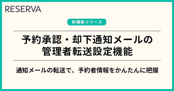 - 予約承認・却下通知メールの管理者転送設定機能でさらに便利になった予約管理システム「RESERVA」