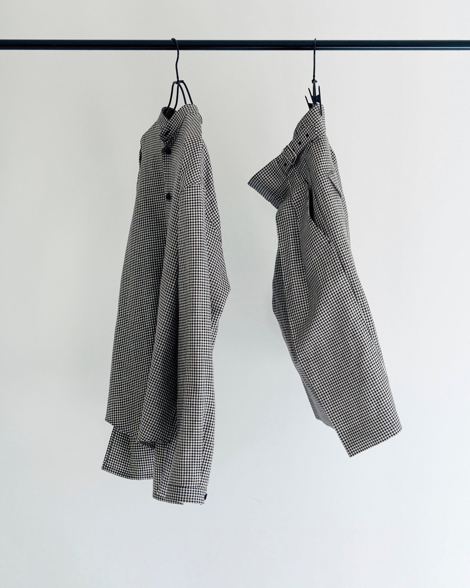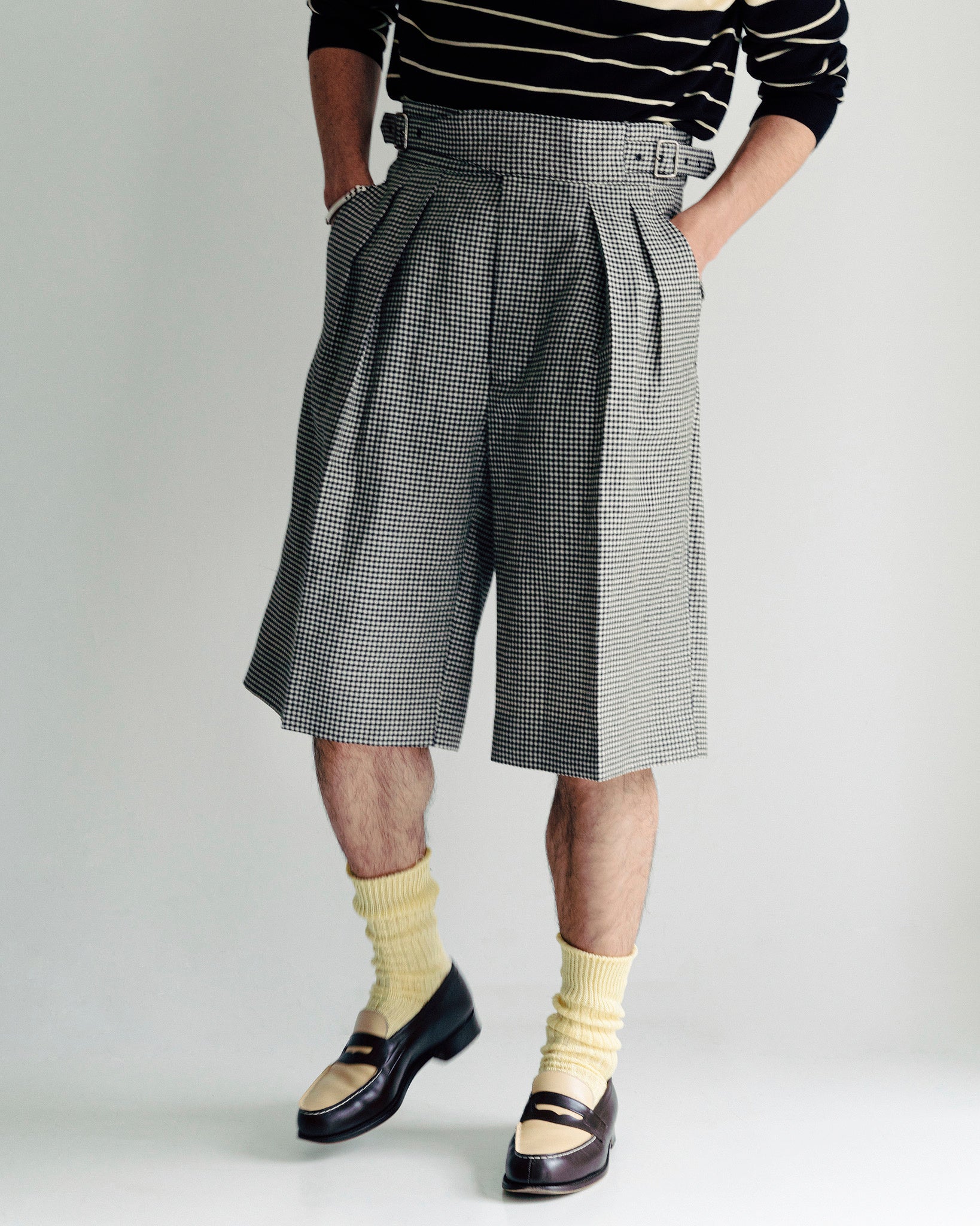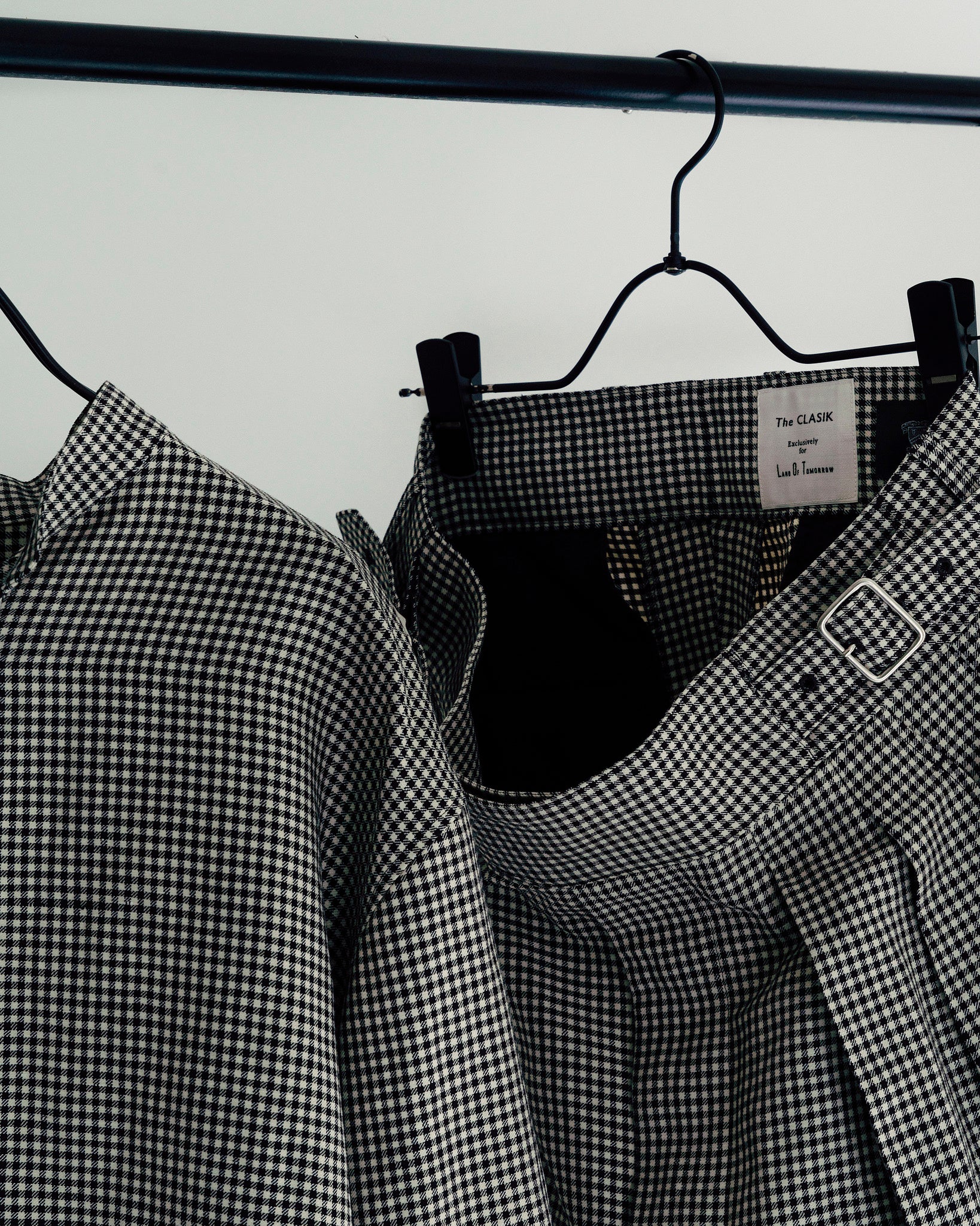フランスの老舗生地メーカー〈ドーメル〉社の別注ファブリックを使用したセットアップを展開。