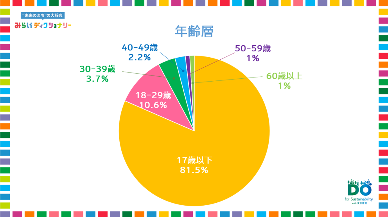 ・〔応募者の年齢層〕約8割が17歳以下と最も多く、全体としては60歳以上まで幅広い年齢層から応募がありました。