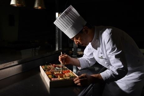 総料理長監修、食材にこだわった60個限定の和洋おせち料理。明石鯛の幽庵焼き、ロブスターテルミドールなど、和洋バランスよく仕上げました。いつもより幸せな1年になりますように…そんな思いを込めました。