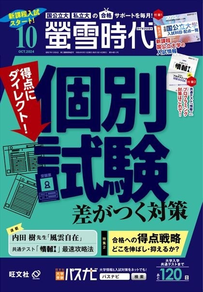 教育出版社の株式会社旺文社(東京都新宿区 代表取締役社長 粂川秀樹)は、国公立大・私立大合格を目指す受験生へ向け、「個別試験で差をつける勉強方法」を特集した月刊 『螢雪時代10月号』 を2024年9月13日(金)に刊行いたします。