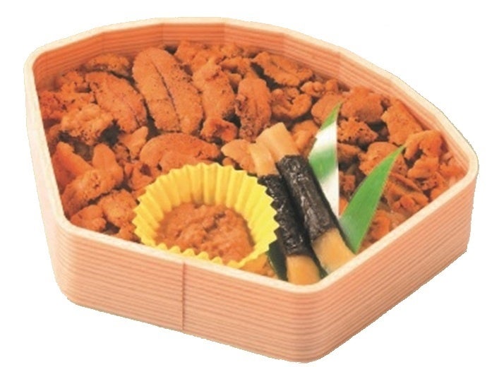 小名浜港を望む商業施設「小名浜美食ホテル」は、地元の駅弁が絶えて久しい「いわき駅」に駅弁の復活をと、2015年に駅弁業界に参入。第53回(2018年)の駅弁大会に「うに貝焼き食べくらべ弁当」で初登場し3位にランクインした実績を持ちます。「焼きうに弁当」は、焼くことで旨みを引き出したウニを茶飯の上にぎっしりと敷き詰めたウニ好きにはたまらない新作駅弁。ウニのみを煮詰めて作った濃厚な「ウニみそ」での“味変”や「しそ巻き大根」で箸休めをしながら、最後まで飽きることなくウニを堪能できます。