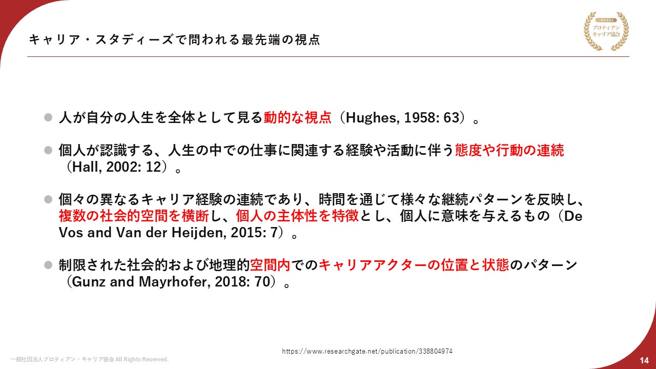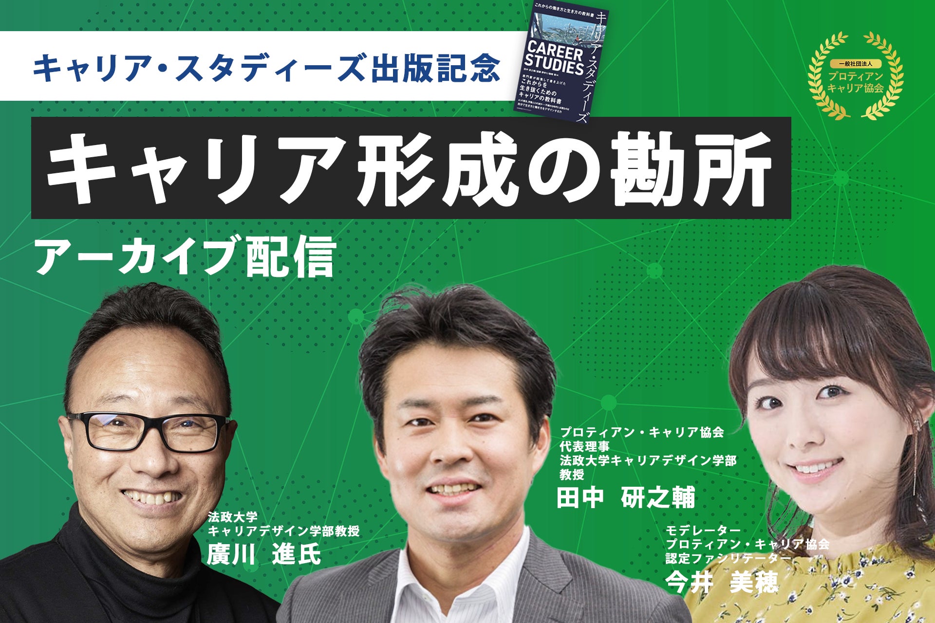 一般社団法人プロティアン・キャリア協会(東京都新宿区、代表理事:田中研之輔・有山徹、以下「当協会」)は、組織と個人のより良い関係構築と個人の主体的なキャリア開発を支援する団体です。この度10月2日(水)に開催したオンラインイベント「キャリア・スタディーズ出版記念 キャリア形成の勘所」のアーカイブ配信を開始したことをお知らせいたします。法政大学キャリアデザイン学部 廣川 進教授をゲストに迎え、当協会の代表理事であり、法政大学キャリアデザイン学部教授の田中 研之輔と対談形式でお届けしました。AI時代におけるキャリアの考え方、そしてより豊かな未来を築くためのヒントを、参加者の皆さんと一緒に探求しています。アーカイブ配信にて、イベント内容をぜひご覧ください。