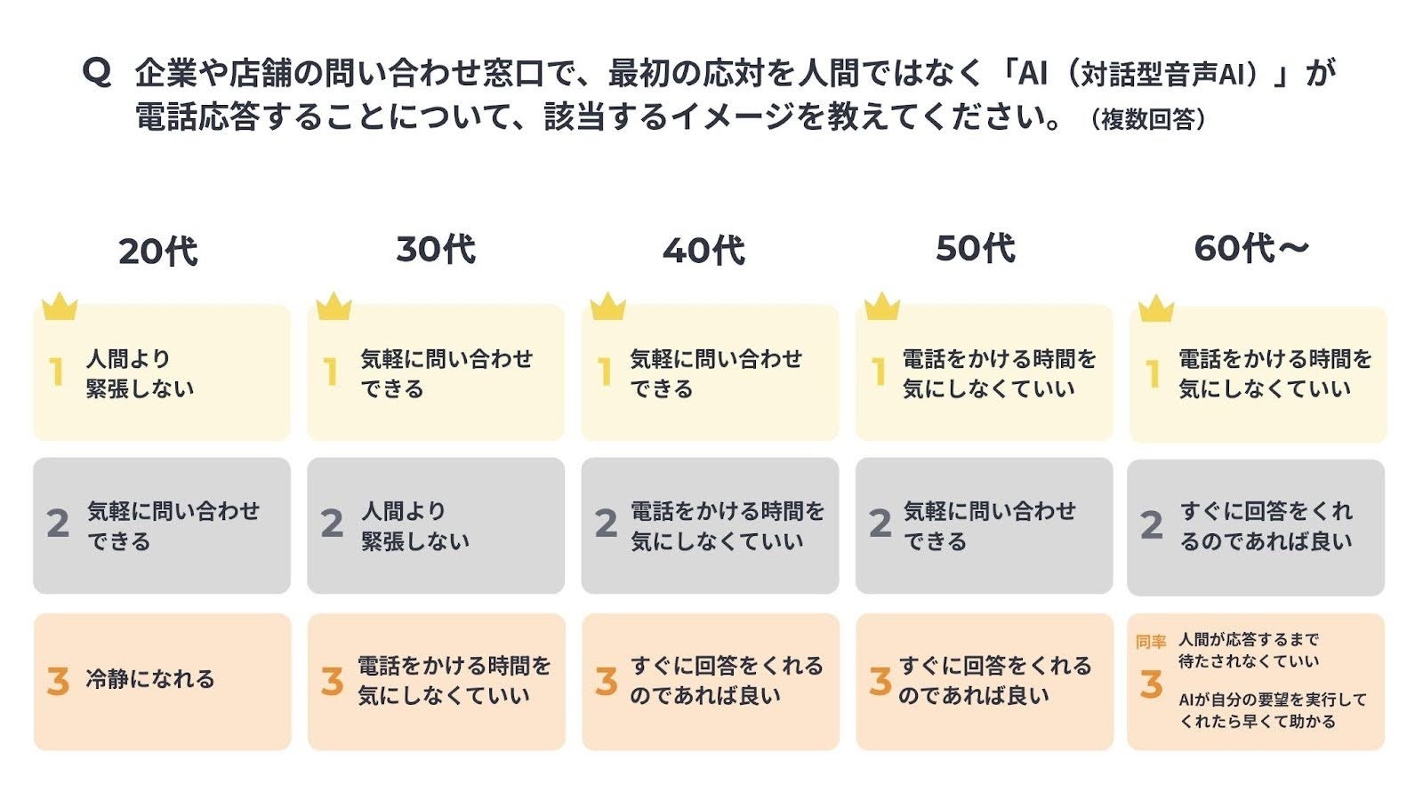 AIによる電話の一次応答、半数を超える50.3%がポジティブ。 特に20代では63.7%が好意的なイメージを持つと回答