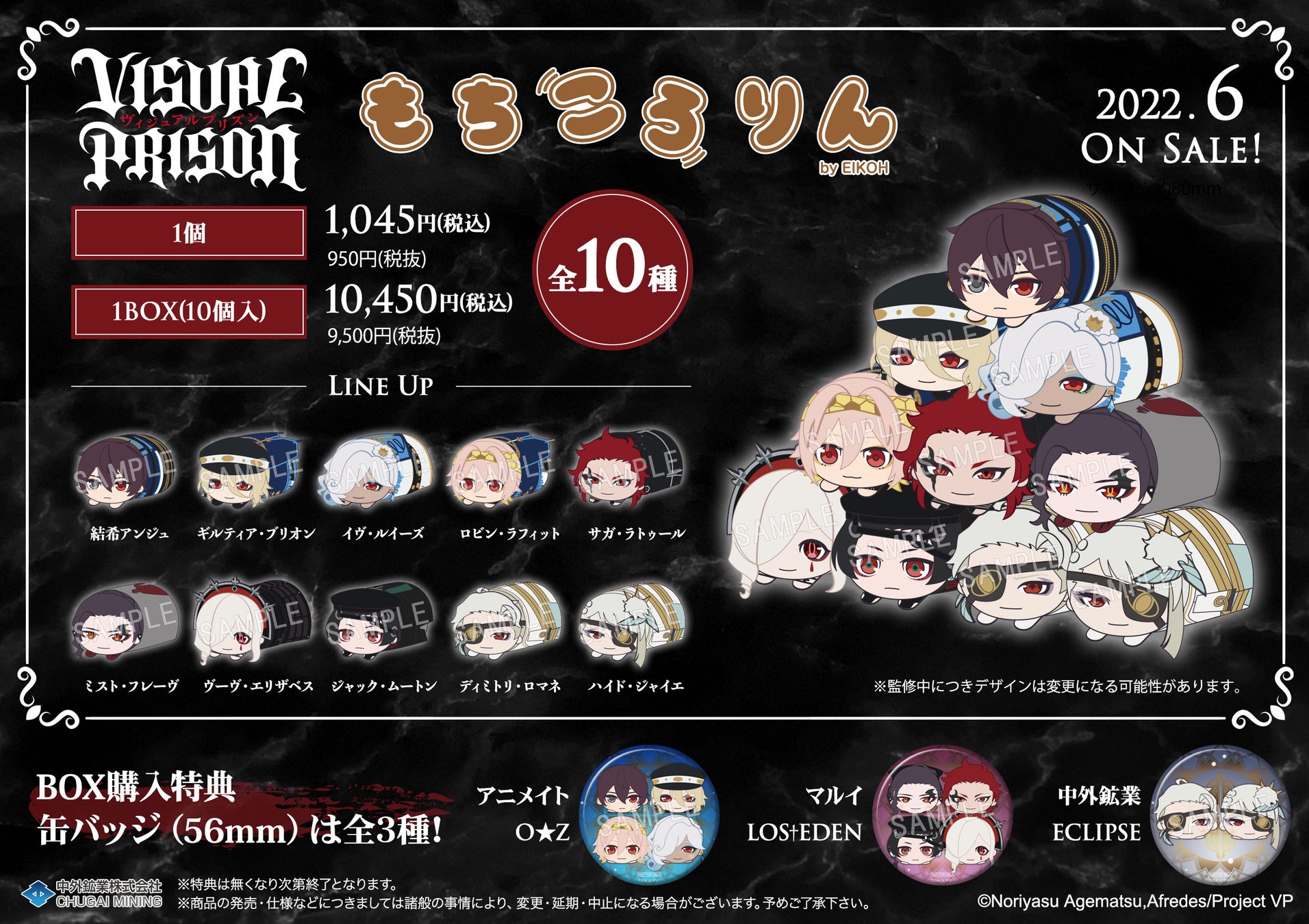 キャラクターグッズの商品企画・製作・販売を行う中外鉱業株式会社コンテンツ部は、TVアニメ『ヴィジュアルプリズン』より「もちころりん ぬいぐるみマスコット」を販売いたします。2022年6月発売予定となります。