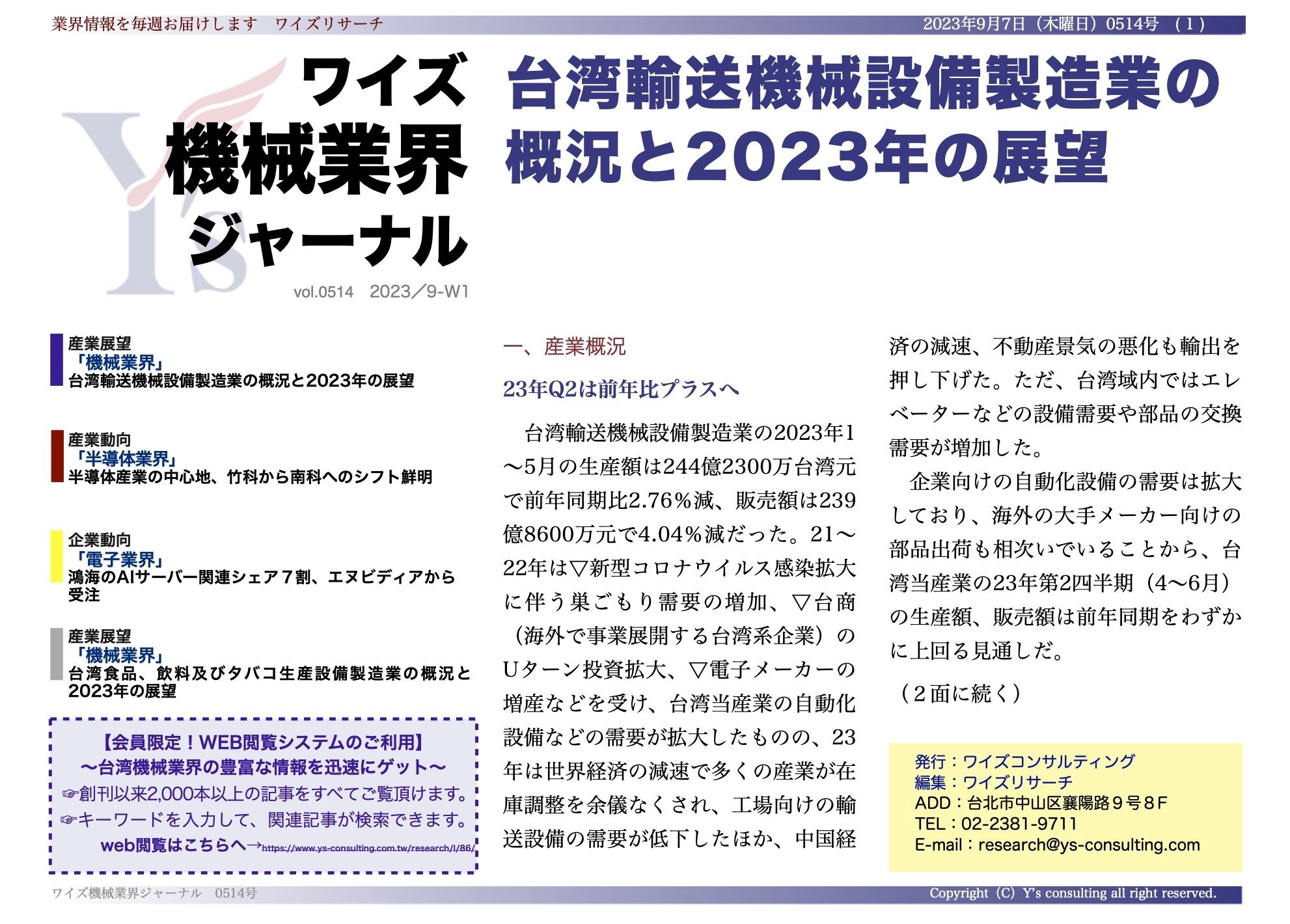 台湾輸送機械設備製造業の 概況と2023年の展望